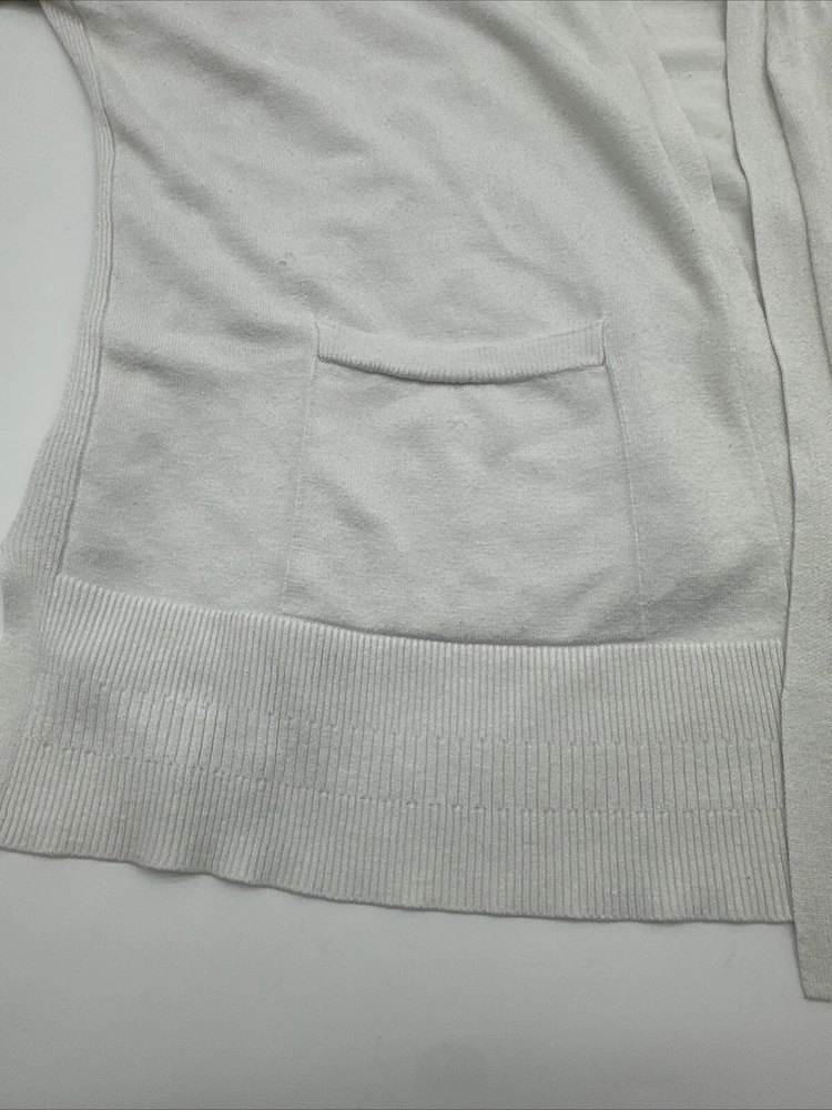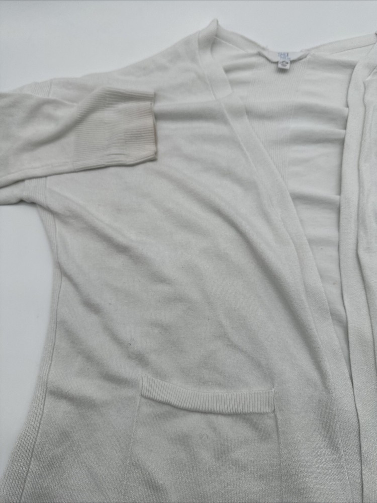 This Time and Tru cardigan for women in size XL is a classic piece for any casual occasion. The white solid pattern is elegant and versatile, while the long sleeves and open style make it comfortable and easy to wear. Made of polyester and rayon, the material is lightweight and soft, ensuring a pleasant fit. The cardigan is designed with a regular fit and size type, perfect for any women's department. The brand, Time & True, is known for its quality and style, making this sweater a great addition to any wardrobe. The sweater is manufactured in China and features an open style, making it perfect for layering over any outfit. *Check the images above for the flaws and measurements of the item.