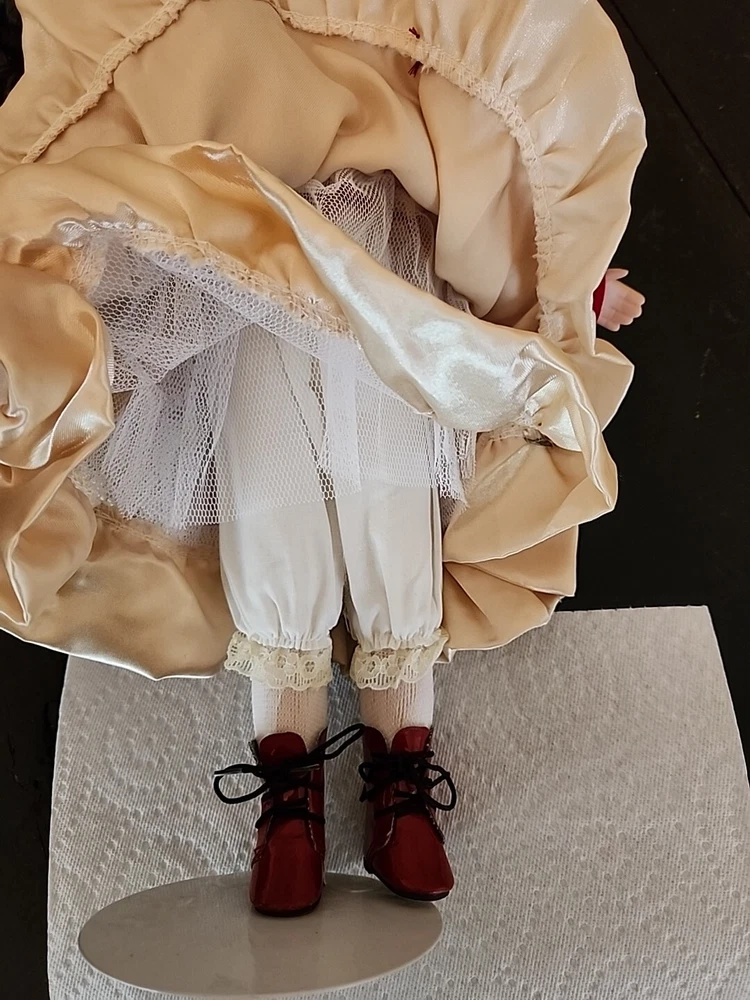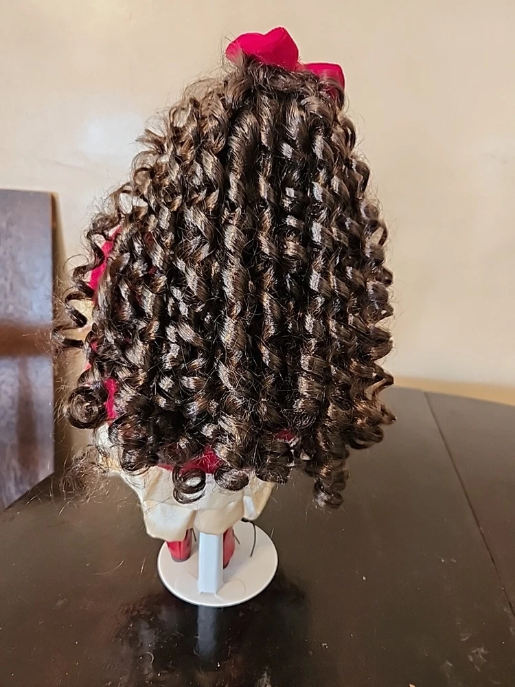 This stunning porcelain doll is a part of the Timeless Treasures Angelina Collection. The 16-inch girl doll with dark brown curly hair and brown eyes comes with an outfit and is an original piece manufactured in 2001. The doll is made with high-quality porcelain material and has a light complexion. The doll is perfect for collectors and doll enthusiasts who appreciate the beauty of porcelain dolls. This single unit is in excellent shape and has been well-maintained. Add this exquisite piece to your collection today!