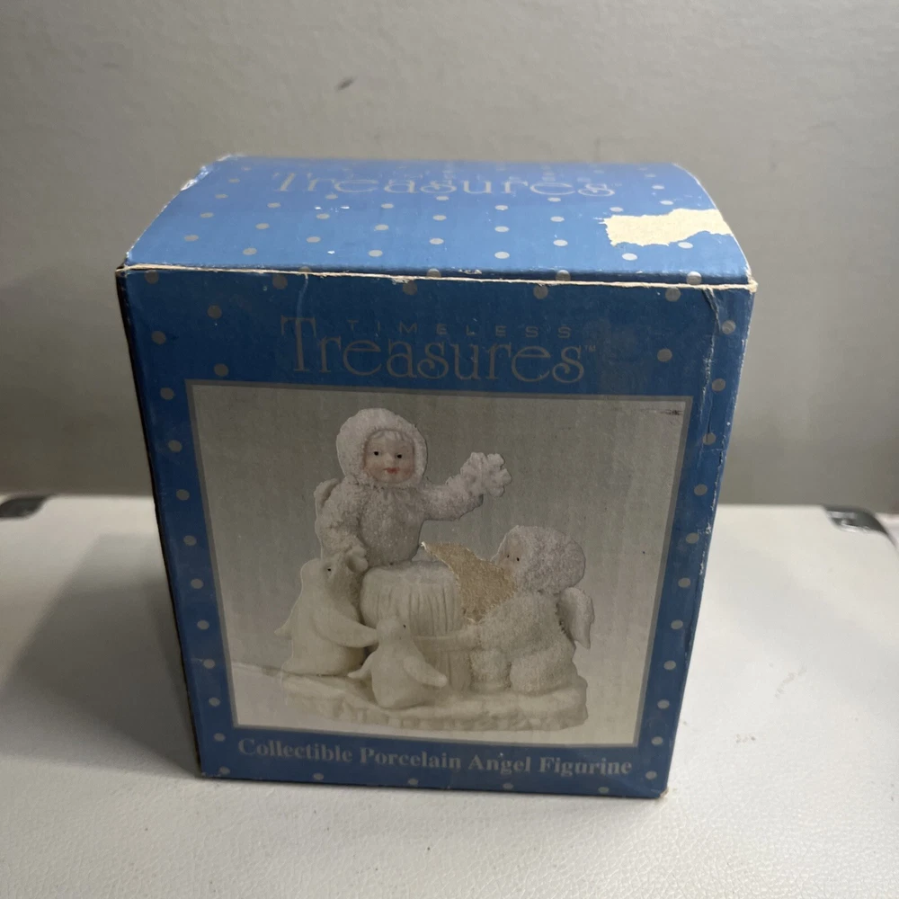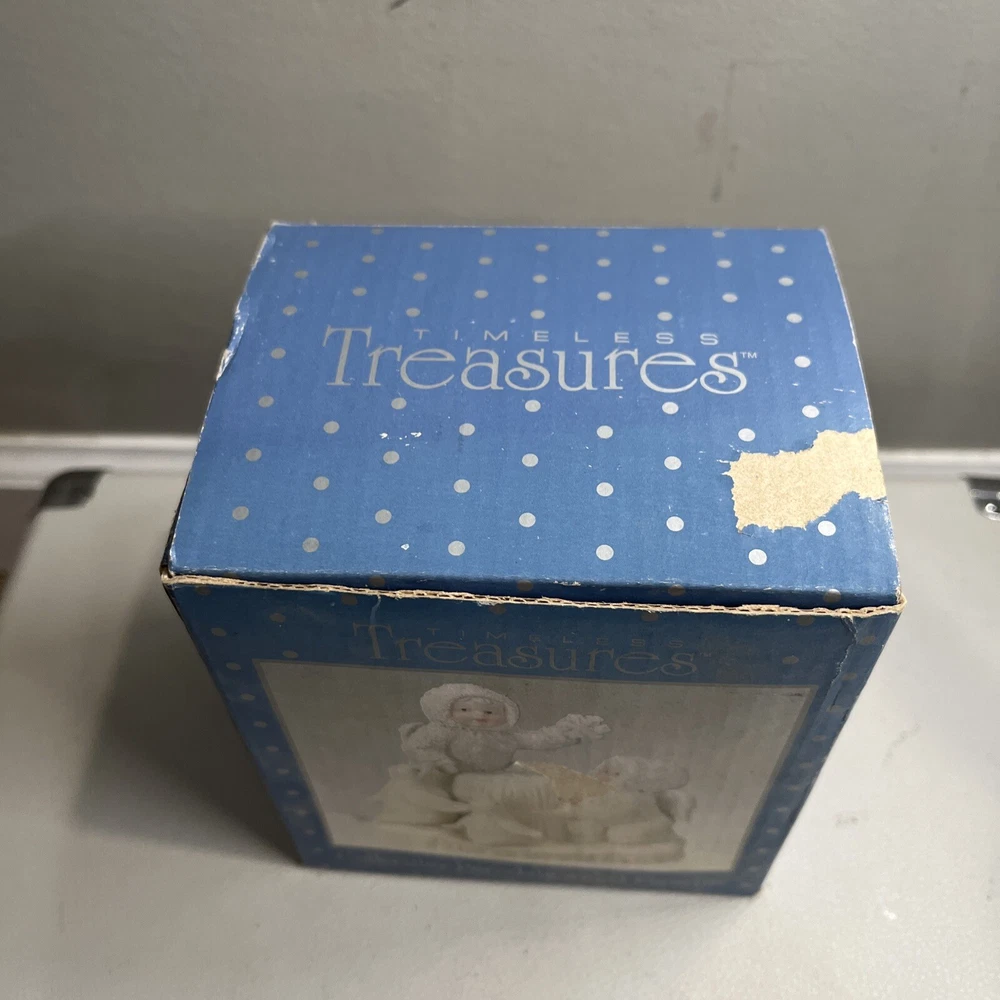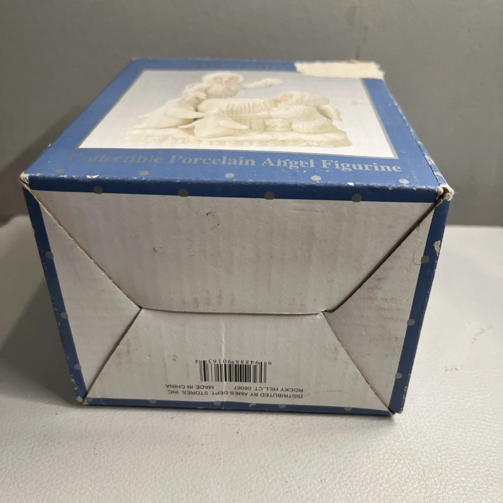 This beautiful collectible porcelain angel figurine is a timeless treasure perfect for any room. Made by AMES, it features a stunning white color with intricate snowflake details on a ceramic material. The figurine is part of the Treasured Pals collection and is designed for adult collectors. With its angelic theme and Christmas occasion, this figurine will make a great addition to any collection. It was manufactured in China between 2000-2009 and is sure to bring joy to anyone who displays it. Add this charming piece to your decorative collection today!
