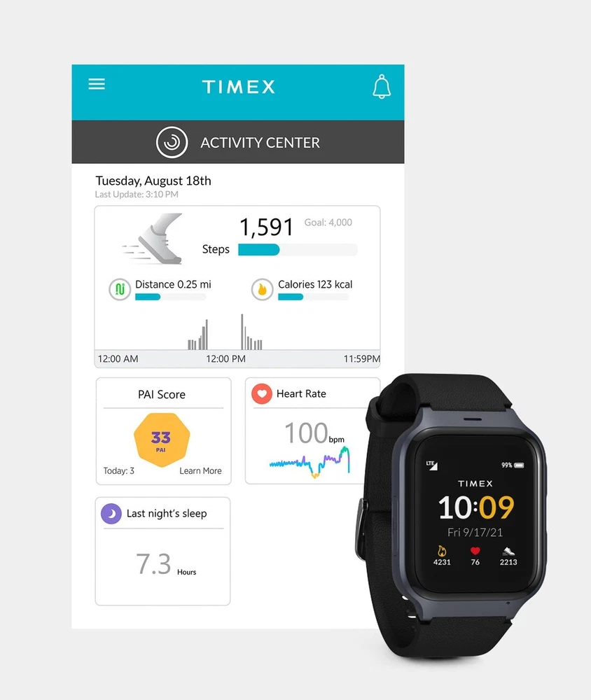 Features: Bluetooth Enabled, Fall Detection, Fitness Tracker, GPS, Heart Rate Monitor, Music Player, Sleep Monitor, Touchscreen, Water-Resistant Case Size: 45 mm Storage Capacity: 4 GB Brand: Timex Network: T-Mobile Compatible Operating System: Android, iOS - Apple Band Color: Black Case Color: Gray Model: MT43AY Band Material: Silicone