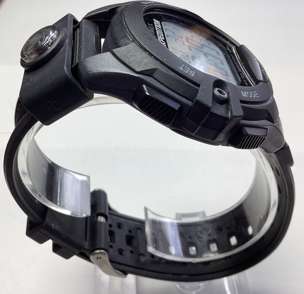 Upgrade your timepiece with the Timex Indiglo Men's Digital Watch, a blend of functionality and classic style. The watch features a sleek 42mm plastic case with a sturdy buckle closure and a comfortable rubber two-piece strap that fits wrist sizes up to 8 inches. Its versatile design complements both casual and sporty attire while providing the durability needed for everyday wear. The gray digital dial is accented by Arabic numerals and a complementary black rubber band, offering a clean and readable display. The watch includes a range of features such as a chronograph, date indicator, and backlight, ensuring versatility and ease of use in various settings. With its quartz movement and additional functionalities like a day/night indicator and compass, this timepiece is designed to keep pace with your active lifestyle.1323