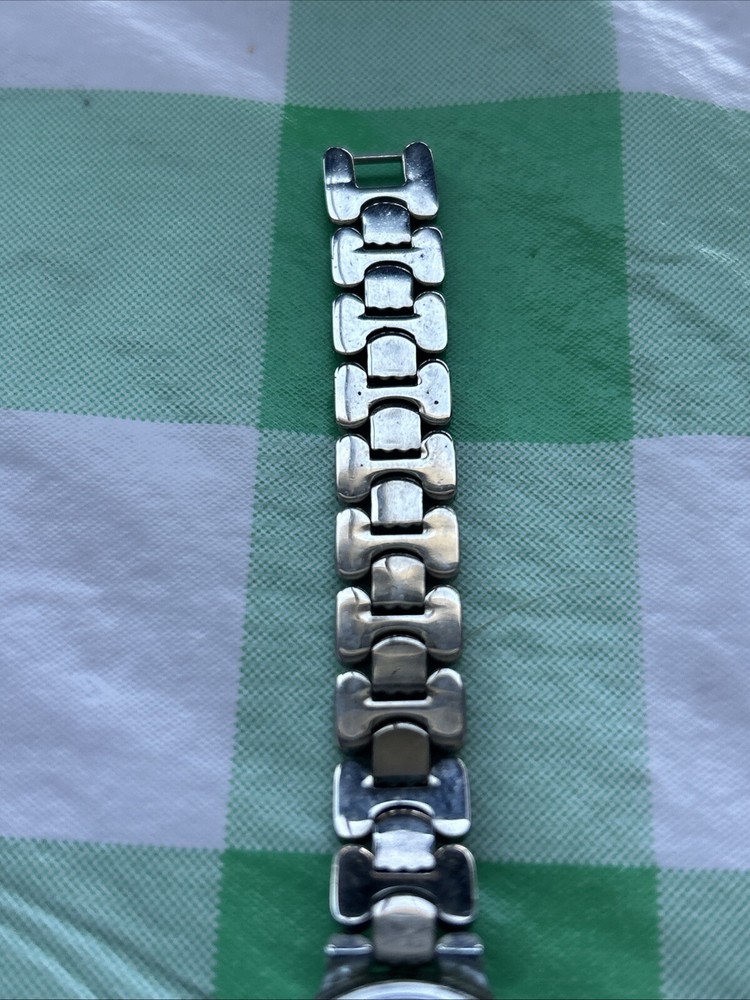 This watch is used and shows signs of wear. Please ask any questions you may have and we will get back to you as soon as possible. New battery installed upon purchase