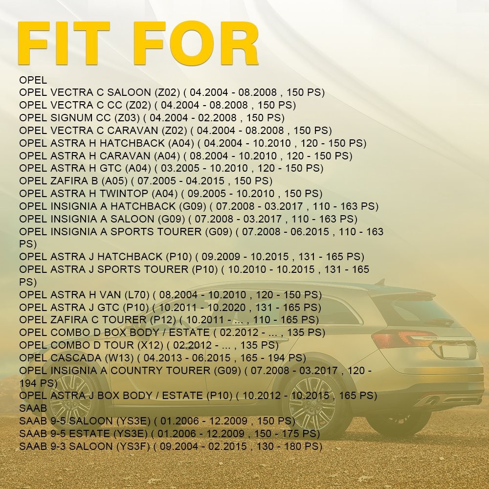 Fit for: Best choice of motor parts Timing Belt & Water Pump Kit For Vauxhall Insignia Astra J 1.9 2.0 CDTI Diesel Fit for: ALFA-ROMEO ALFA ROMEO 156 Saloon (932) ( 11.2002 - 09.2005 , 126 - 150 PS) ALFA ROMEO 156 Sportwagon (932) ( 11.2002 - 05.2006 , 126 - 150 PS) ALFA ROMEO 147 (937) ( 11.2002 - 03.2010 , 126 - 170 PS) ALFA ROMEO GT (937) ( 11.2003 - 09.2010 , 150 - 170 PS) ALFA ROMEO 159 Saloon (939) ( 09.2005 - 11.2011 , 136 - 170 PS) ALFA ROMEO Brera (939) ( 03.2008 - 06.2010 , 163 - 170 PS) ALFA ROMEO 159 Sportwagon (939) ( 03.2006 - 11.2011 , 136 - 170 PS) ALFA ROMEO Spider (939) ( 04.2009 - 03.2011 , 163 - 170 PS) ALFA ROMEO Giulietta Hatchback (940) ( 04.2010 - 12.2020 , 120 - 175 PS) ALFA ROMEO Giulietta Van (940_) ( 04.2011 - ... , 140 - 175 PS) CADILLAC CADILLAC BLS Saloon ( 04.2006 - ... , 150 - 180 PS) CADILLAC BLS Estate ( 12.2007 - ... , 150 - 180 PS) CHEVROLET CHEVROLET Malibu VIII (V300) ( 04.2012 - ... , 160 PS) CHRYSLER CHRYSLER Delta Hatchback ( 08.2011 - ... , 165 PS) FIAT FIAT Stilo Hatchback (192) ( 09.2003 - 11.2006 , 126 - 150 PS) FIAT Stilo Multi Wagon (192) ( 09.2003 - 08.2008 , 126 - 150 PS) FIAT Croma II Estate (194) ( 06.2005 - ... , 136 - 150 PS) FIAT Sedici (FY) ( 06.2006 - 10.2014 , 135 PS) FIAT Ducato III Minibus (250, 290) ( 06.2011 - ... , 116 PS) FIAT Ducato III Van (250, 290) ( 06.2011 - ... , 116 PS) FIAT Ducato III Platform / Chassis (250, 290) ( 06.2011 - ... , 116 PS) FIAT Bravo II Hatchback (198) ( 04.2007 - 12.2014 , 150 - 165 PS) FIAT Doblo II Estate (263) ( 01.2010 - ... , 95 - 135 PS) FIAT Doblo II Box Body / Estate (263) ( 02.2010 - ... , 95 - 135 PS) FIAT Doblo II Platform/Chassis (263) ( 02.2010 - ... , 120 - 135 PS) FIAT Freemont (345) ( 08.2011 - ... , 136 - 170 PS) FIAT 500X (334) ( 09.2014 - ... , 136 - 150 PS) FIAT Stilo Box Body / Estate (192) ( 09.2005 - 08.2008 , 150 PS) JEEP JEEP Cherokee V (KL) ( 04.2014 - 08.2018 , 140 - 170 PS) JEEP Renegade Off-Road (BU, B1) ( 07.2014 - ... , 120 - 170 PS) JEEP Compass (MP, M6) ( 12.2016 - ... , 140 - 170 PS) LANCIA LANCIA Delta III (844) ( 09.2008 - 08.2014 , 163 - 190 PS) OPEL OPEL Vectra C Saloon (Z02) ( 04.2004 - 08.2008 , 150 PS) OPEL Vectra C CC (Z02) ( 04.2004 - 08.2008 , 150 PS) OPEL Signum CC (Z03) ( 04.2004 - 02.2008 , 150 PS) OPEL Vectra C Caravan (Z02) ( 04.2004 - 08.2008 , 150 PS) OPEL Astra H Hatchback (A04) ( 04.2004 - 10.2010 , 120 - 150 PS) OPEL Astra H Caravan (A04) ( 08.2004 - 10.2010 , 120 - 150 PS) OPEL Astra H GTC (A04) ( 03.2005 - 10.2010 , 120 - 150 PS) OPEL Zafira B (A05) ( 07.2005 - 04.2015 , 150 PS) OPEL Astra H TwinTop (A04) ( 09.2005 - 10.2010 , 150 PS) OPEL Insignia A Hatchback (G09) ( 07.2008 - 03.2017 , 110 - 163 PS) OPEL Insignia A Saloon (G09) ( 07.2008 - 03.2017 , 110 - 163 PS) OPEL Insignia A Sports Tourer (G09) ( 07.2008 - 06.2015 , 110 - 163 PS) OPEL Astra J Hatchback (P10) ( 09.2009 - 10.2015 , 131 - 165 PS) OPEL Astra J Sports Tourer (P10) ( 10.2010 - 10.2015 , 131 - 165 PS) OPEL Astra H Van (L70) ( 08.2004 - 10.2010 , 120 - 150 PS) OPEL Astra J GTC (P10) ( 10.2011 - 10.2020 , 131 - 165 PS) OPEL Zafira C Tourer (P12) ( 10.2011 - ... , 110 - 165 PS) OPEL Combo D Box Body / Estate ( 02.2012 - ... , 135 PS) OPEL Combo D Tour (X12) ( 02.2012 - ... , 135 PS) OPEL Cascada (W13) ( 04.2013 - 06.2015 , 165 - 194 PS) OPEL Insignia A Country Tourer (G09) ( 07.2008 - 03.2017 , 120 - 194 PS) OPEL Astra J Box Body / Estate (P10) ( 10.2012 - 10.2015 , 165 PS) SAAB SAAB 9-5 Saloon (YS3E) ( 01.2006 - 12.2009 , 150 PS) SAAB 9-5 Estate (YS3E) ( 01.2006 - 12.2009 , 150 - 175 PS) SAAB 9-3 Saloon (YS3F) ( 09.2004 - 02.2015 , 130 - 180 PS) SAAB 9-3 Convertible (YS3F) ( 01.2006 - 02.2015 , 130 - 180 PS) SAAB 9-3 Estate (YS3F) ( 03.2005 - 02.2015 , 130 - 180 PS) SAAB 9-3X Estate ( 02.2009 - 12.2012 , 180 PS) SAAB 9-5 Saloon (YS3G) ( 05.2010 - 01.2012 , 160 PS) SUZUKI SUZUKI SX4 I Hatchback (EY, GY) ( 07.2009 - ... , 135 PS) VAUXHALL VAUXHALL Vectra Mk2 (C) Saloon (Z02) ( 04.2004 - 08.2008 , 150 PS) VAUXHALL Vectra Mk2 (C) CC (Z02) ( 04.2004 - 07.2008 , 150 PS) VAUXHALL Signum (Z03) ( 04.2004 - 03.2008 , 150 PS) VAUXHALL Astra Mk5 (H) Hatchback (A04) ( 01.2004 - 05.2009 , 120 - 150 PS) VAUXHALL Vectra Mk2 (C) Estate (Z02) ( 04.2004 - 05.2009 , 150 PS) VAUXHALL Astra Mk5 (H) Estate (A04) ( 08.2004 - 03.2009 , 120 - 150 PS) VAUXHALL Zafira Mk2 (B) (A05) ( 07.2005 - 11.2014 , 150 PS) VAUXHALL Astra Mk5 (H) TwinTop (A04) ( 01.2006 - 11.2010 , 150 PS) VAUXHALL Astra Mk5 (H) Sport Hatch (A04) ( 02.2005 - 11.2010 , 120 - 150 PS) VAUXHALL Insignia Mk1 (A) Saloon (G09) ( 07.2008 - 05.2017 , 110 - 190 PS) VAUXHALL Astravan Mk5 (H) (A04) ( 03.2005 - 11.2011 , 150 PS) VAUXHALL Insignia Mk1 (A) Hatchback (G09) ( 07.2008 - 05.2017 , 110 - 190 PS) VAUXHALL Insignia Mk1 (A) Sports Tourer (G09) ( 07.2008 - 05.2017 , 110 - 190 PS) VAUXHALL Astra Mk6 (J) Hatchback (P10) ( 12.2009 - ... , 160 - 165 PS) VAUXHALL Astra Mk6 (J) Estate (P10) ( 10.2010 - ... , 160 - 165 PS) VAUXHALL Astra Mk6 (J) GTC (P10) ( 10.2011 - ... , 165 PS) VAUXHALL Zafira Tourer Mk3 (C) (P12) ( 10.2011 - 08.2018 , 110 - 165 PS) VAUXHALL Combo Mk3 (D) Box Body / Estate (X12) ( 11.2011 - ... , 135 PS) VAUXHALL Cascada Convertible (W13) ( 02.2013 - ... , 165 - 194 PS) VAUXHALL Insignia Mk2 (A) Country Tourer (G09) ( 07.2013 - 05.2017 , 163 PS) ✅ Specifications: OE Numbers: 46804051, 55183528, 55192323, 55200441, 55209993, 531084410, 536029110, 532028710, 538071410, KTBWP8470, 530056230, 30-1352-6, KP35623XS-1 Cross References: WPK-1702R01, WPK1702R01, For ALFA ROMEO: 46804051, 55183528, 55192323, 55200441, 55209993, 55212159, 55268918, 55268919, 55269148, 60813592, 1987946457, For CHEVROLET: 55568637, 95524042, For CHRYSLER: K68096225AA, CT1105WP2, KTBWP8470, For FIAT: 46804051, 55183527, 55183528, 55191315, 55200441, 55208381, 55209993, 55215666, 55238027, 55268918, 55268919, 55269148, 60813590, 71747799, 7778565, 7778565, K68096225AA, K68290837AA, For JEEP: 46804051, 46804051, 55209993, 55269148, 55209993, 55262155, 55268918