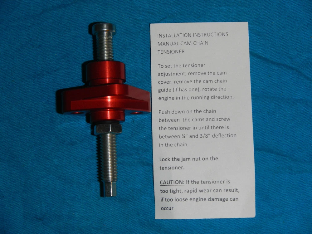 NEW READY TO INSTALL. VERY SIMPLE DESIGN. EASY TO USE. COMES WITH MOUNTING INSTRUCTIONS. THIS IS A RED TENSIONER. THIS FITS TRIUMPH: - 2009 to 2012 STREET TRIPLE 675 - 2009 to 2012 DAYTONA 675 - 2009 to 2012 TRIUMPH 675 REPLACE THAT OLD AUTOMATIC TENSIONER THAT WILL EVENTUALLY FAIL YOU. HAVE COMFORT KNOWING THIS ONE CAN NOT COLLAPSE UNDER STRESS. - CHEAPER THAN A NEW STOCK AUTOMATIC / PROBLEMATIC TENSIONER. THIS MANUAL CAM CHAIN TENSIONER IS DESIGNED TO REPLACE THE AUTOMATIC AND HYDRAULIC TENSIONERS ON HIGH PERFORMANCE ENGINES. THE AUTOMATIC ADJUSTERS CAN BACK OUT WHEN THE THROTTLE IS CLOSED SUDDENLY AT HIGH RPM. THIS ALLOWS THE CAMS TO GO MOMENTARILY OUT OF TIME, AND CAN RESULT IN BENT VALVES AND SERIOUS ENGINE DAMAGE. HYDRAULIC TENSIONERS HAVE A TENDENCY TO PUT TOO MUCH TENSION ON THE CHAIN GUIDE UNDER HIGH RPM (HIGH OIL PRESSURE CONDITIONS), RESULTING IN PREMATURE WEAR. BOTH PROBLEMS CAN BE ELIMINATED WITH THE INSTALLATION OF THIS MANUAL TENSIONER. NO MATTER WHAT THE ENGINE DOES, THE CAM CHAIN TENSION WILL REMAIN CONSTANT. THIS MANUAL CAM CHAIN TENSIONER IS A MUST FOR ANY KIND OF PERFORMANCE RIDING . THIS MANUAL TENSIONER IS CNC MACHINED FROM BILLET ALLOY TO EXACT TOLERANCES FOR PERFECT FIT.