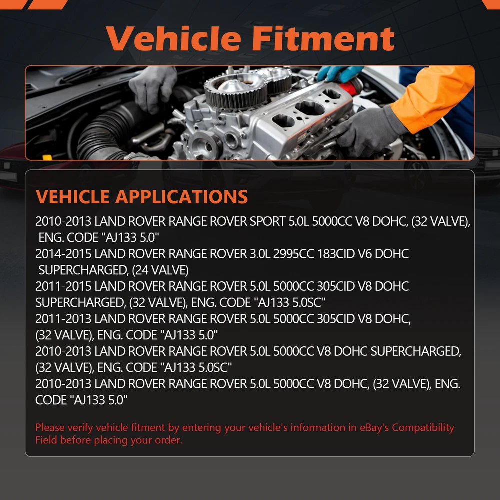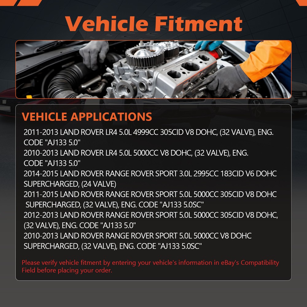 SAFE & SECURE SHOPPING 100% SATISFACTION GUARANTEED FAST SHIPPING Store Categories Store Categories Other Fuel System Engine and Components Brake Systems Suspension and Steering System Electrical and Ignition System Cooling Systems Air Conditioning Systems Transmission Systems Lighting and Signal Systems Engineering Equipment(GC) Automotive Tools & Supplies Emission Control System Interior Parts & Accessories You may also like Timing Chain Water Pump Kit 1307350 9-4201S For 2002-05 Chevrolet Cavalier 2.2L 97.99 USD Free shipping Timing Chain Kit For Hyundai Kia 3.3L 3.5L 3.8L G6DB G6DC G6CD G6DA 2007-2012 95.78 USD 10.0 USD Engine Timing Belt Kit with Water Pump For 02-10 Toyota Lexus TKT021 TCKWP298 89.99 USD Free shipping Timing Chain Kit For Land Rover Range Rover Sport LR4 3.0L 5.0L HSE SE LR095472 Product Description We also sell a variety of Car & Truck Parts & Accessories and Excavator Parts, if you have other shopping needs please feel free to contact us, we will give you the biggest purchase discount. Timing Chain Kit For 10-15 Land Rover LR4 Range Rover 3.0L 5.0L V8 DOHC Specifications Length(cm): 30.0, width(cm): 15.0, height(cm): 5.0 Weight(kg): 2.6 Material: Metal/Rubber Color: As picture Placement on Vehicle: Engine Link Quantity: Timing Chains:140 Balance Shaft Chain:72 Interchange Part Numbers LR032048 LR072638 LR051013 LR051011 LR051012 LR095472 LR072611 LR032087 LR011218 LR087162 LR012110 Fitment 2011-2013 LAND ROVER LR4 5.0L 4999CC 305CID V8 DOHC, (32 VALVE), ENG. CODE "AJ133 5.0" 2010-2013 LAND ROVER LR4 5.0L 5000CC V8 DOHC, (32 VALVE), ENG. CODE "AJ133 5.0" 2014-2015 LAND ROVER RANGE ROVER SPORT 3.0L 2995CC 183CID V6 DOHC SUPERCHARGED, (24 VALVE) 2011-2015 LAND ROVER RANGE ROVER SPORT 5.0L 5000CC 305CID V8 DOHC SUPERCHARGED, (32 VALVE), ENG. CODE "AJ133 5.0SC" 2012-2013 LAND ROVER RANGE ROVER SPORT 5.0L 5000CC 305CID V8 DOHC, (32 VALVE), ENG. CODE "AJ133 5.0" 2010-2013 LAND ROVER RANGE ROVER SPORT 5.0L 5000CC V8 DOHC SUPERCHARGED, (32 VALVE), ENG. CODE "AJ133 5.0SC" 2010-2013 LAND ROVER RANGE ROVER SPORT 5.0L 5000CC V8 DOHC, (32 VALVE), ENG. CODE "AJ133 5.0" 2014-2015 LAND ROVER RANGE ROVER 3.0L 2995CC 183CID V6 DOHC SUPERCHARGED, (24 VALVE) 2011-2015 LAND ROVER RANGE ROVER 5.0L 5000CC 305CID V8 DOHC SUPERCHARGED, (32 VALVE), ENG. CODE "AJ133 5.0SC" 2011-2013 LAND ROVER RANGE ROVER 5.0L 5000CC 305CID V8 DOHC, (32 VALVE), ENG. CODE "AJ133 5.0" 2010-2013 LAND ROVER RANGE ROVER 5.0L 5000CC V8 DOHC SUPERCHARGED, (32 VALVE), ENG. CODE "AJ133 5.0SC" 2010-2013 LAND ROVER RANGE ROVER 5.0L 5000CC V8 DOHC, (32 VALVE), ENG. CODE "AJ133 5.0" Features Built to strict quality control standards 100% factory tested 100% Compatible with OEM Parts, meets Original Equipment Manufacturer (OEM) Standards Constructed from high quality metal for a long service life Withstands extreme temperature fluctuations to provide a reliable seal Individual gaskets are die cut to each application and have elastomeric sealing beads in critical areas (where applicable) The complete kits, which meet OEM performance requirements, ensure a quiet and maintenance-free experience Attention Double-check that the sprockets are properly aligned with the chain and that everything is perfectly lined up Note What causes timing chain noise Timing chain noise is commonly most noticeable during cold startup of the vehicle when oil pressure and oil flow is at its lowest. Excess slack in the timing chain can cause a rattling sound or even a clanking sound if the slack is severe enough to cause the chain to contact the timing chain cover. If the engine is equipped with a hydraulic timing chain tensioner, the noise may disappear or lessen as the engine oil warms up and the tensioner removes some of the slack. If the timing chain wear is great enough so the tensioner can no longer compensate for the slack, the noise may continue even after warming up About Us Payment Shipping Returns Contact Us About Us 1. Thank you very much for shopping in our store. If you have any questions, please contact us immediately. We will resolve any issues. 2. If you are satisfied with our products and services, please give us a positive feedback, thank you. Payment PayPal payment accepted only.Please purchase and pay for the item through the eBay. Shipping Please make sure to provide us with correct, accurate and detailed shipping address and correct phone number Orders will ship within 1 to 3 business days after payment is received or cleared. If you have not received your package after more than 30 business days, please leave us a message via eBay message. Be aware of tariffs for international buyers Import duties, taxes and charges are not included in item prices or shipping charges. These charges are the buyer's responsibility. Returns 1. Please read the product description carefully and check the pictures carefully before placing an order. Returns or refunds can only be made if the product is damaged or errors in the product description cause the product to fail to meet your needs. In this case, the seller pays all associated shipping costs, if any. 2. If the buyer makes a mistake and the product is in good condition, it can be resold or returned, and the buyer will be responsible for all related shipping costs. Contact Us If you want to purchase in bulk or looking for a long-term parts supplier, please contact me directly and we can meet your needs. We will provide you with the best products and services. Please put aside your doubts and worries and buy with confidence. We offer 100% customer satisfaction, if you have any questions, please let us know and we will do our best to resolve it. Please leave a positive review after receiving the item, our good reputation depends on you. Copyright © 2022 Tongtool