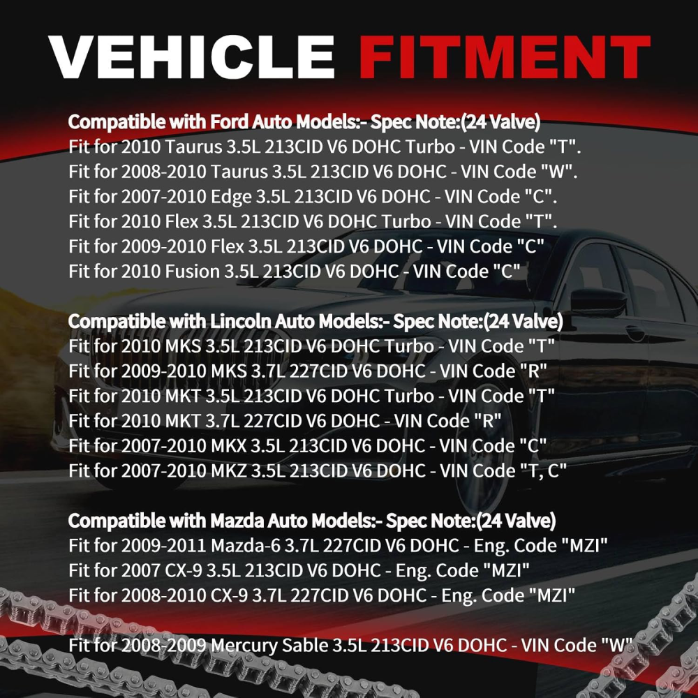WHY OUR CUSTOMERS KEEP SHOPNG WITH US ✅All items are covered by manufacturer warranty. ✅FAST FREE SHIPPING. ✅Most orders ship within 1 business day with Tracking Number. Customer also can choose two-day or expedited shipping. ✅100% customer satisfaction is backed by a 30-Day Money Back Guarantee for New items and a 30-Day Money Back Guarantee for Recon. FEATURES 1 Manufactured with Precision to Meet OE Standards IATF16949 Certified. 2 High Quality & Brand New 3 Two Year Warranty. 4 After Market Replacement 5 Customers Service Center Will Deal with Pre-sale and After-sale Problems In Time Timing Chain Kit Head Gaskets Bolts Kit for 2007-2010 Ford Lincoln Mazda 3.5L V6 WHY OUR CUSTOMERS KEEP SHOPNG WITH US ✅All items are covered by manufacturer warranty. ✅FAST FREE SHIPPING. ✅Most orders ship within 1 business day with Tracking Number. Customer also can choose two-day or expedited shipping. ✅100% customer satisfaction is backed by a 30-Day Money Back Guarantee for New items and a 30-Day Money Back Guarantee for Recon. FEATURES 1 Manufactured with Precision to Meet OE Standards IATF16949 Certified. 2 High Quality & Brand New 3 Two Year Warranty. 4 After Market Replacement 5 Customers Service Center Will Deal with Pre-sale and After-sale Problems In Time 6 Factory Affordable Price with High Quality Service: Return/ Replace/ Offer Technical Support. FITMENTS For FORD: 2010-2010 for Ford Taurus 3.5L 213CID V6 DOHC Turbo - VIN Code "T" 2008-2010 for Ford Taurus 3.5L 213CID V6 DOHC - VIN Code "W" 2007-2010 for Ford Edge 3.5L 213CID V6 DOHC - VIN Code "C" 2010-2010 for Ford Flex 3.5L 213CID V6 DOHC Turbo - VIN Code "T" 2009-2010 for Ford Flex 3.5L 213CID V6 DOHC - VIN Code "C" 2010-2010 for Ford Fusion 3.5L 213CID V6 DOHC - VIN Code "C" For LINCOLN: 2010-2010 for Lincoln MKS 3.5L 213CID V6 DOHC Turbo - VIN Code "T" 2009-2010 for Lincoln MKS 3.7L 227CID V6 DOHC - VIN Code "R" 2010-2010 for Lincoln MKT 3.5L 213CID V6 DOHC Turbo - VIN Code "T" 2010-2010 for Lincoln MKT 3.7L 227CID V6 DOHC - VIN Code "R" 2007-2010 for Lincoln MKX 3.5L 213CID V6 DOHC - VIN Code "C" 2007-2010 for Lincoln MKZ 3.5L 213CID V6 DOHC - VIN Code "T, C" For MAZDA: 2009-2011 for Mazda-6 3.7L 227CID V6 DOHC - Eng. Code "MZI" 2007-2007 for Mazda CX-9 3.5L 213CID V6 DOHC - Eng. Code "MZI" 2008-2010 for Mazda CX-9 3.7L 227CID V6 DOHC - Eng. Code "MZI" 2008-2009 for Mazda Mercury Sable 3.5L 213CID V6 DOHC - VIN Code "W" OEM NUMBER HS26487PT, HGS4198, ES71320 AW6023, AT4Z-6306-A, BA5Z-6L266-B, BA5Z-6K255-A, BA5Z-6B274-A, AT4Z-6K297-A, AT4Z-6K297-B, 7T4Z-6256-A, 7T4Z-6268-CA, AT4Z-6268-C, 7T4Z-6K254-BA, 7T4Z-6K254-AA M390HV, 224-43678, 7T4Z-6600-AA, 7T4Z-6600-BA, CY01-14-100, CY01-14-100A, CY01-14-100B, CY01-14-100C, EM-390, GL3Z-6C639-A, ZZJ1-14-100, ZZJ1-14-100A, ZZJ1-14-100B, ZZJ1-14-100C ITEM INCLUDES Multiple Layers Steel (MLS) Head Gasket Valve Cover Gasket Valve Stem Seals Intake Manifold Gasket Exhaust Manifold Gasket Front Camshaft Seal O-rings Other Small Gaskets 16 Cylinder Head Bolts 1 Primary Timing Chain (202 links), 2 Secondary Timing Chains (upper), 2 Cam Sprocket with bolts (25 teeth - exhaust), 1 Crank Sprocket (23 teeth), 1 Guide Rail (left - fixed - long),1 Guide Rail (left - fixed - short),1 Guide Rail (right - fixed - short),1 Guide Rail (right - tensioner rail), 1 Primary Tensioner, 1 Tensioner (upper - left),1 Tensioner (upper - right), 1 Water Pump with gasket 1 Oil Pump FREE RETURN If you are unhappy with your purchase for any reason, you can return it to us in an un-used condition in the original packaging within 30 days of purchase and we'll give you a refund or exchange. The refund/Exchange will not include postage/eBay costs. Please note you MUST contact us to obtain a Return Authorization Number before returning any part. Any parcel without the Return Authorization Number will be rejected *If your item is faulty or was incorrect, you must contact our sales representative before returning the parcel and we will endeavour to solve the problem effectively. Video or picture is required to show the item 、condition before we issue the Return Authorization Number. * Professional installation is highly recommended (No Instruction Included) * For any needs please contact us Item Specifics Brand : susucar Type : Timing Chain Kit with Head Gasket Kit OE/OEM Part Number : HS26487PT, HGS4198, ES71320 Interchange Part Number : AT4Z-6306-A, 7T4Z-6256-A, 7T4Z-6268-CA, AT4Z-6268-C Superseded Part Number : 7T4Z-6K254-BA, 7T4Z-6K254-AA, BA5Z-6L266-B, BA5Z-6K255-A Other Part Number : BA5Z-6B274-A, AT4Z-6K297-A, AT4Z-6K297-B Compatible Makes : FORD , LINCOLN , MAZDA Compatible Models : EDGE, FLEX, FUSION, TAURUS , MKX, MKZ, CX-9 Compatible Years : 2007-2010 Compatible Engine : 3.5L 3496CC 213CID V6 DOHC, (24 VAVLE) Items Included : Cylinder Head Gasket Set, Timing Chain Kit,Oil & Water Pump Material : Steel/Aluminum/Plastic Fitment Type : Direct Replacement OE Spec or Performance/Custom : OE Spec About My Store : 100% SATISFACTION, 100% Source manufacturer Manufacturer : SUSUCARpartsWhosale Note : Please contact us to confirm the application before Purchase Manufacturer Warranty : 2 Years Other Part Number 1 : AW6023, AT4Z-6306-A, BA5Z-6L266-B, BA5Z-6K255-A Other Part Number 2 : BA5Z-6B274-A, AT4Z-6K297-A, AT4Z-6K297-B, 7T4Z-6256-A Other Part Number 3 : AT4Z-6268-C, 7T4Z-6K254-BA, 7T4Z-6K254-AA, 7T4Z-6268-CA Other Part Number 4 : M390HV, 224-43678, 7T4Z-6600-AA, 7T4Z-6600-BA, CY01-14-100 Other Part Number 5 : CY01-14-100A, CY01-14-100B, CY01-14-100C, EM-390, ZZJ1-14-100C Other Part Number 6 : GL3Z-6C639-A, ZZJ1-14-100, ZZJ1-14-100A, ZZJ1-14-100B Why choose US? Susucar is passionate about maintaining our culture of demonstrating value and building personal client relationships in perfecting the client experience. We are also a culture of giving back to the community and preserving our precious planet - a passion that runs deep throughout our Company. Every single item we sell goes through thorough inspection