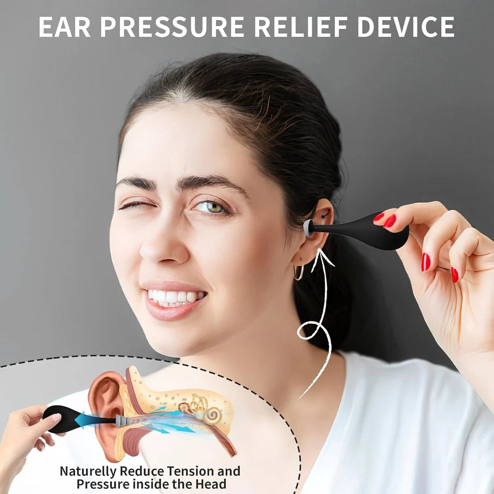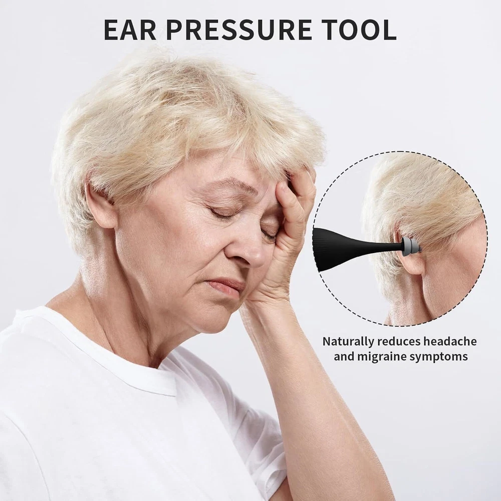 Relieve Ear Discomfort: Ear pressure regulator has a non-invasive design that gently stimulates the inner ear through air pressure, thus relieving ear discomfort caused by stress, high pressure, diving, motion sickness, and flying Widely Applicable: The migraine relief regulator has a wide range of uses, not only suitable for ear pressure discomfort during flights and boats, but also for various scenarios such as mountain climbing and deep-sea diving. It is an ideal companion for your travel, exercise, and daily health care. Silicone Material: Ear pressure relief device is made of soft and high quality silicone material, which fits perfectly with the ear canal and won't harm the eardrum, ensuring you a comfortable and safe experience during use Easy to carry: Tension relieving ear pressure tool is compact and easy to carry, perfect for traveling and daily life, when ear pain, just gently insert into the ear canal and press to solve your discomfort anytime, anywhere! Wide Range of uses: Ear pressure regulator is widely used, whether you are on a plane, car, train, elevator, swimming pool and at home, the ear pressure reliever can safely and easily solve your ear pressure problem.