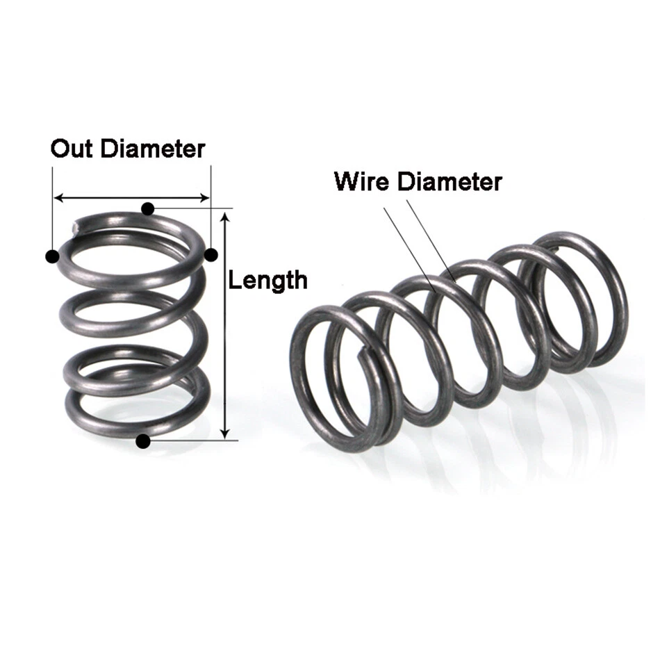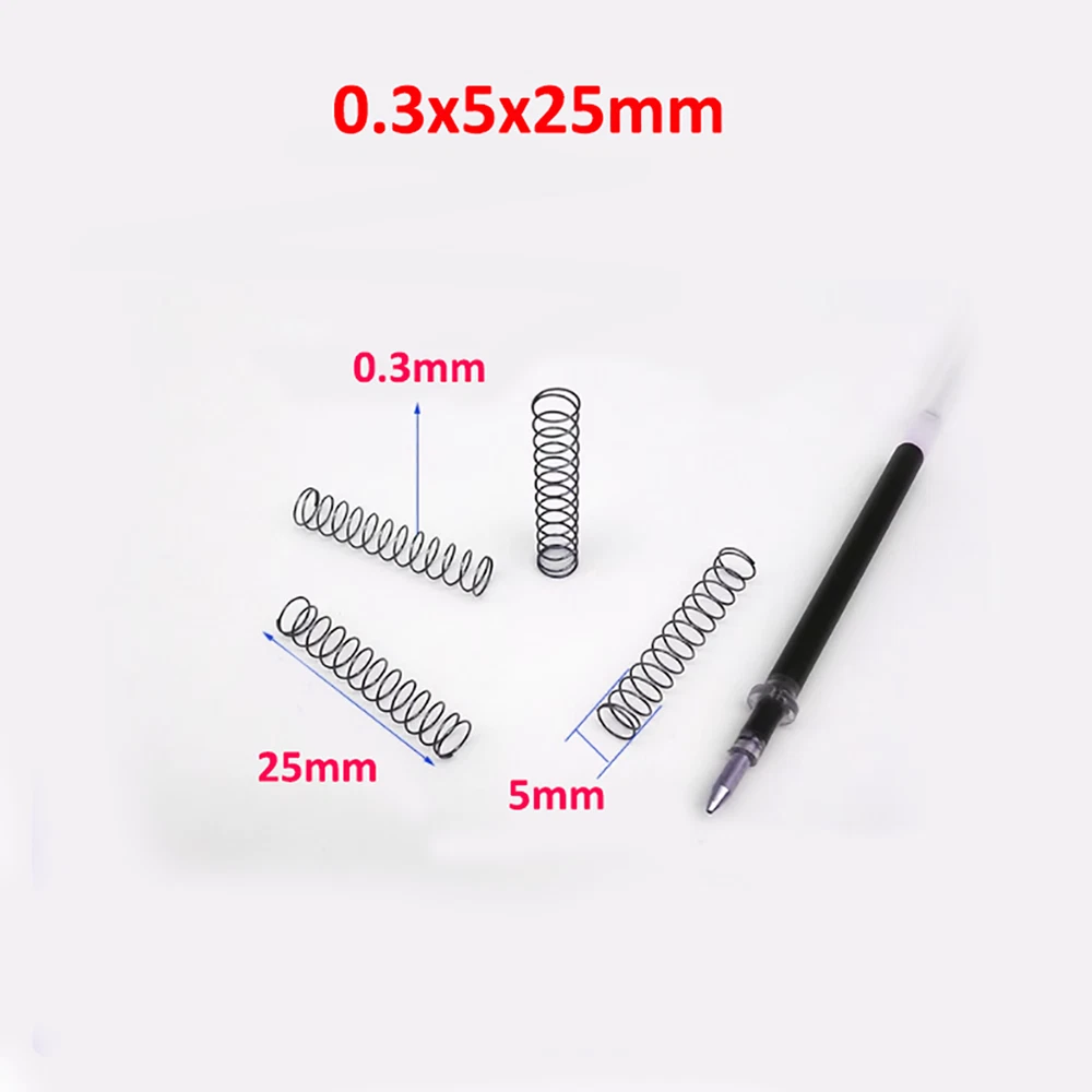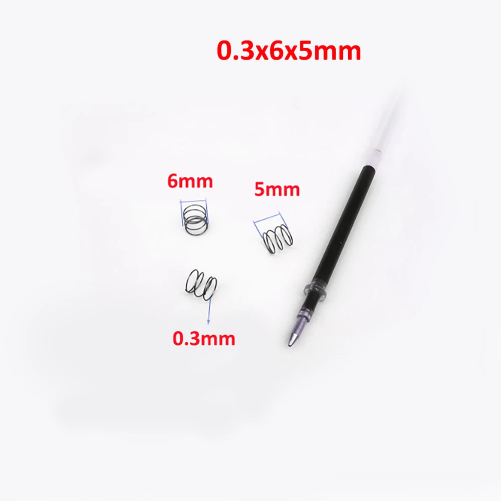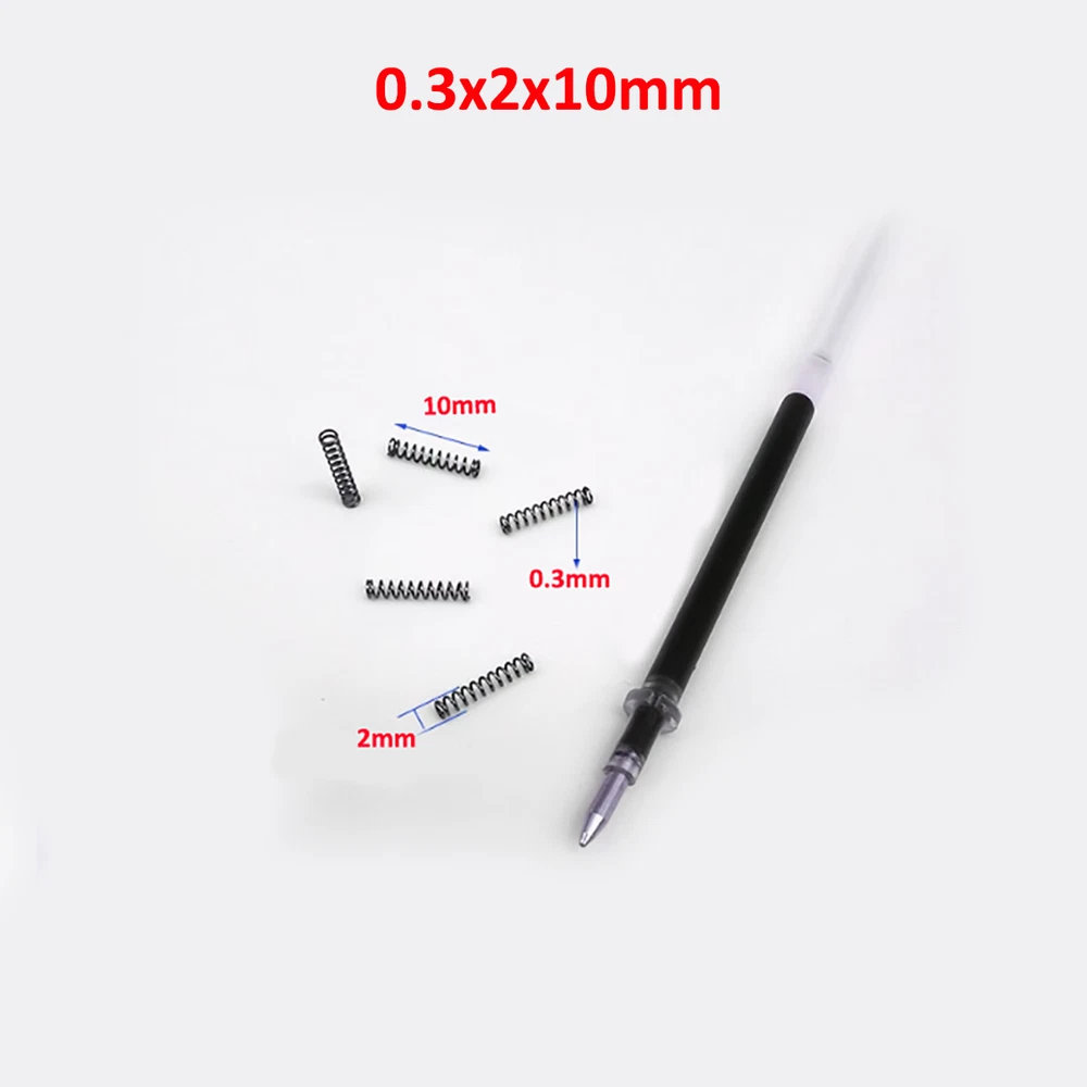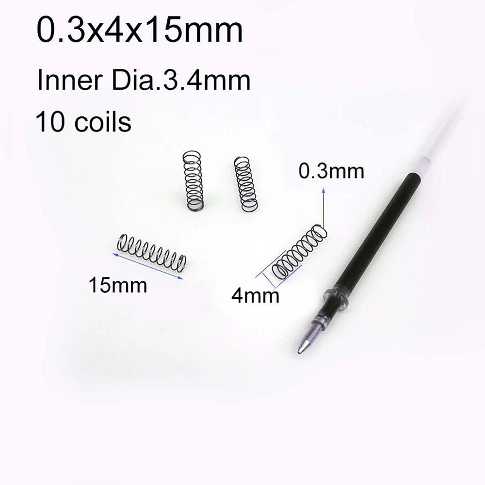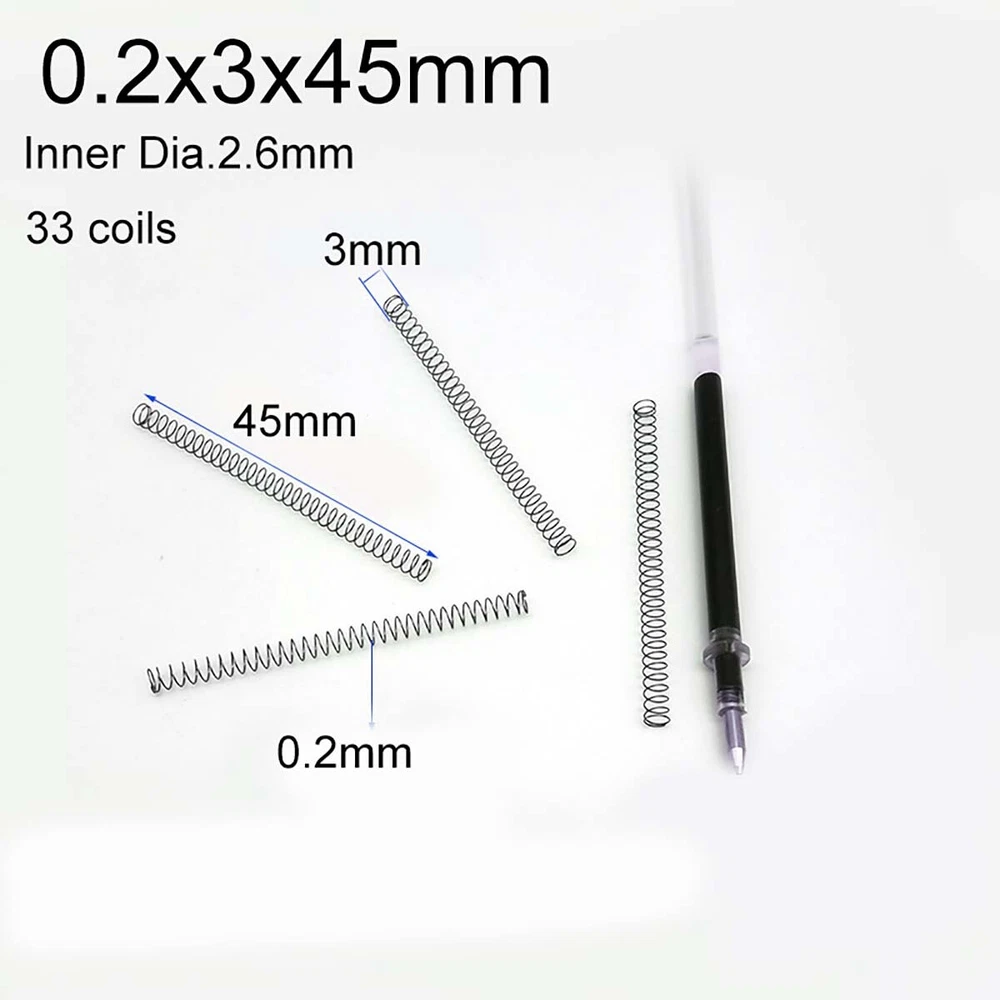 Description Wire Diameter 0.2mm 0.3mm 0.4mm Small Compression Springs Material: Spring Steel Size: Wire Diameter x Out Diameter x Length , Inner Diameter = Out Diameter -2x Wire Diameter . size 0.4*10*50 mm , the wire diameter is 0.4mm, the Out Diameter is 10mm, the length is 50mm, the inner diameter is 9.2mm. Package including: According to you choice.