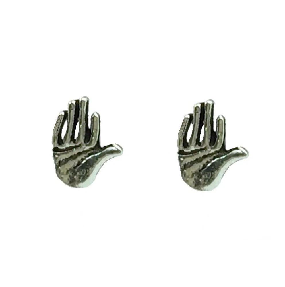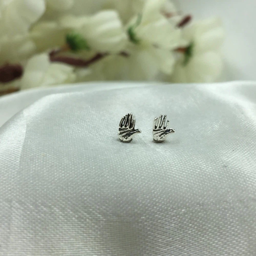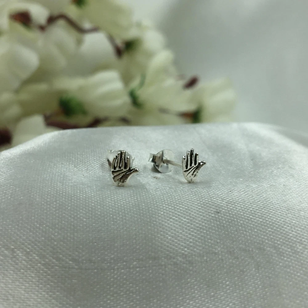 Tiny Mini Palm Hand Studs Dainty Victorian Style Jewelry Gift 925 Silver