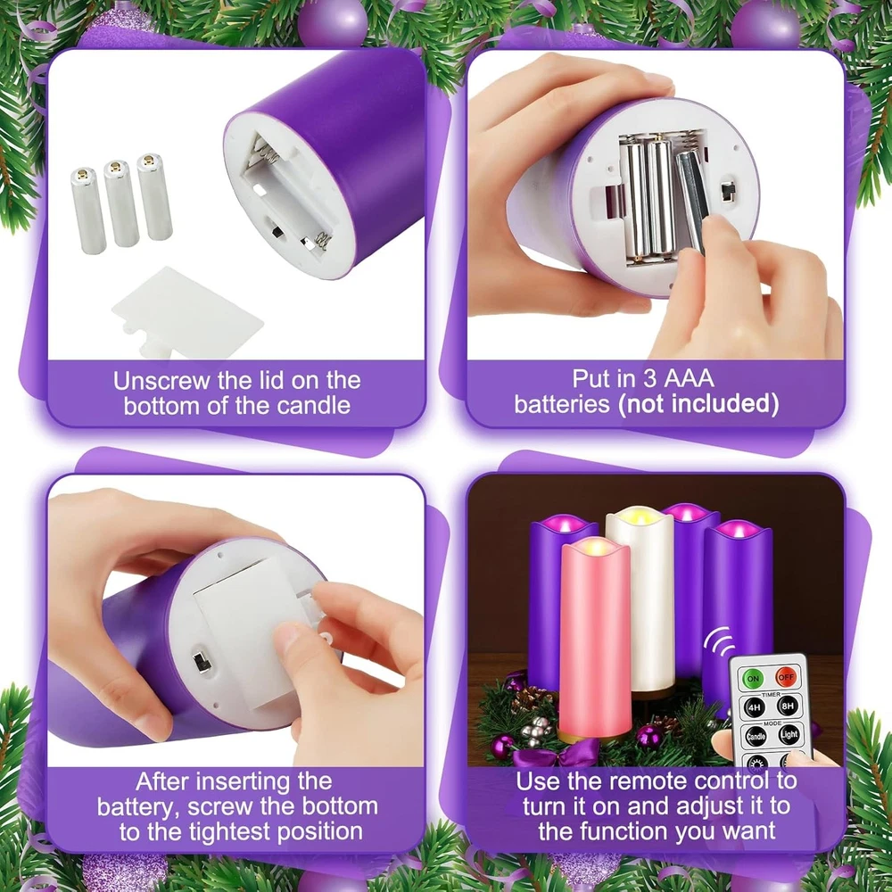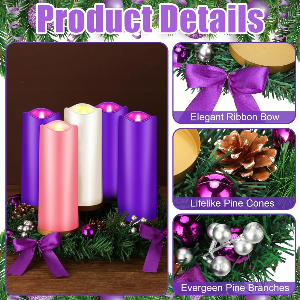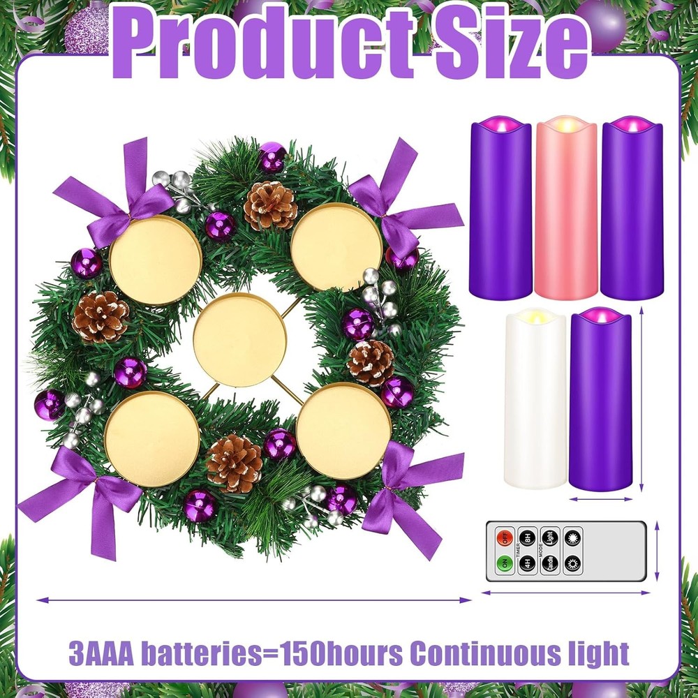 Tioncy 12 Inch Christmas Advent Wreath Candle Holder 8 x 3 x 3 in, Multicolor Description Features: Nice Combination: you will receive 1 piece of Christmas advent wreath candle holder with 5 pieces of advent Candles (remote control included) in different colors, they are ready for use when you receive them, so you don't bother looking for matching candles, suitable for your Christmas decorating needs Long Serving Time: the wreath candle holder is equipped with glue point dots, so the candles can fit well with the wreath; You won't be worried about the candles falling out; The artificial needles branches and berries are also reliable, they look really gorgeous and realistic; And the battery operated pillar candles are made of quality plastic and LED, sturdy and serviceable, safe and reliable, which are reusable and not easy to deform or break for long term use Classic Size: our Christmas advent wreath measures approx. 12 inches/ 30 cm in diameter, and the candles measure 8 x 3 x 3 inches/ 20 x 7.5 x 7.5 cm; The right size makes them nice indoor decorations for most places in your home, like mantelpiece, desktop, cabinets, windowsill, dining room, living room and church Christmas Advent Wreath Set: the classic Christmas advent wreath is an ideal accessory for home decoration, they will offer the opportunity to make families together, so that you can pray, sing and have a good time with family members Wide Range of Use: the christmas candle rings set can be applied for decorating your home, church, theme party, wedding, Christmas, ritual, dinner party, holiday and many other occasions, to add a splash of color and elegance to them Product Details: Color: Multicolor Material: plastic, LED Brand: Tioncy Product Dimensions: 3"L x 3"W x 8"H Finish Type: Smooth Item Weight: 1.13 Kilograms Number of Pieces: 6 Theme: Holidays Item Diameter: 12 Inches Mounting Type: Tabletop Manufacturer: Tioncy Indoor/Outdoor Usage: Indoor Item Weight: 2.48 pounds Item model number: BOO-Tioncy-2979 Handling We will ship all orders within 1 business day of payment. Delivery We Do Not Ship Outside of the Continental US. Return Policy All items qualify for returns within 30 days of receipt. Buyer is responsible for return shipping on any item that is not damaged. Feedback We take our reputation seriously, we buy and sell online, so we understand the value of trust. If you are unsatisfied with your order, please contact us and we will work with you to resolve it to your satisfaction.