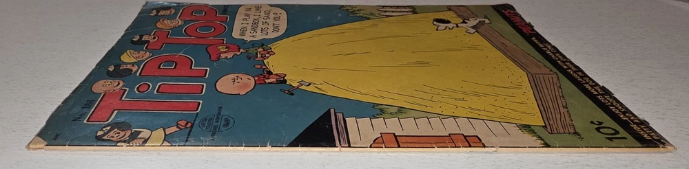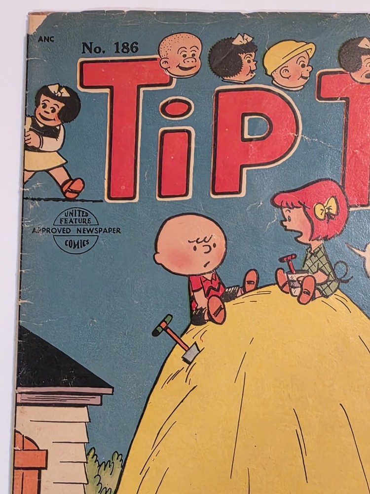 The product is a vintage single unit comic book titled Tip Top #186 featuring the popular characters from Charles Schulz' Peanuts universe, including Snoopy. Published by United Features in 1954 during the Golden Age era, this first printing comic is a valuable collectible for fans of US comics and general audiences. With a humorous satire style, this color comic is a nostalgic piece of American comics history, showcasing the early days of the beloved Peanuts series. - Complete, cover still colorful and vibrant. Interior is good and staples intact. Some spine wear, creasing and ticks. 1" tear top right corner Brittleness and chipping bottom and top left cover but otherwise in good condition for this Golden Age treasure. - Bagged and boarded - Shipped with Gemini packing to insure no damage during shipping - Usps Priority Check out our 1000s of comics in our store We combine shipping