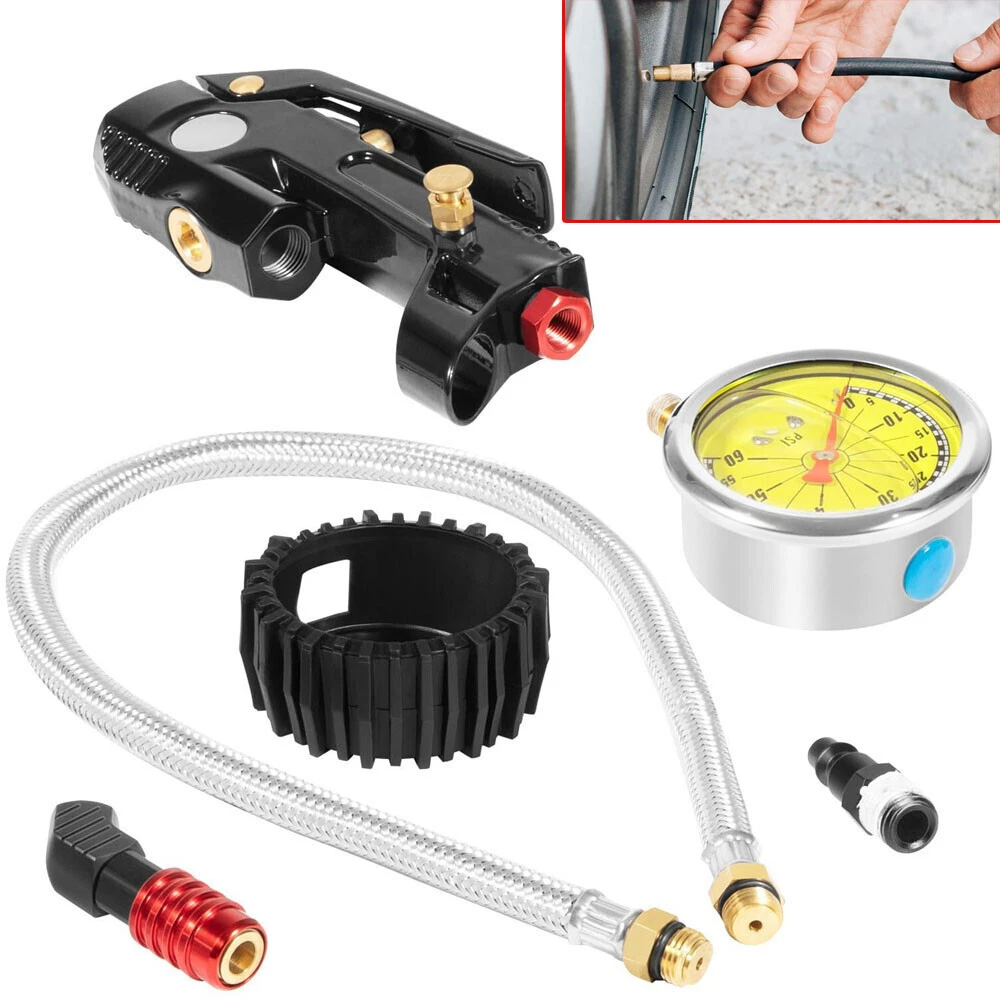 Tire Inflator Kit with Pressure Gauge Lock On Air Chuck Long Hose for Cars SUVs