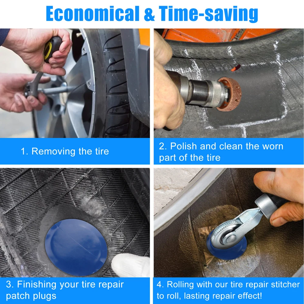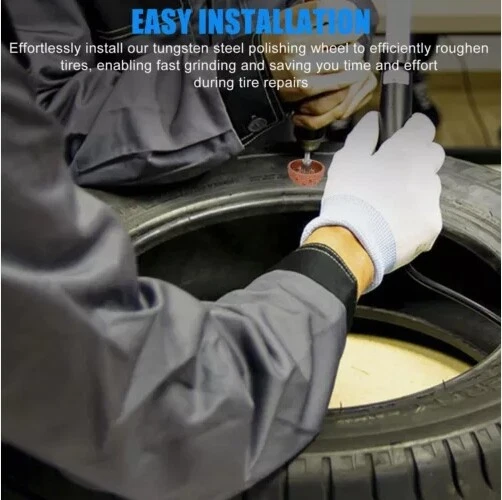 Product Features High Performance Feature: Our Tungsten Buffing Wheels are crafted with premium tungsten alloy, a wear-resistant material that ensures exceptional durability and extended service life. Superb Craftsmanship: Our Tire Buffing Wheels, Tungsten Steel Buffing Wheel, Low-speed hexagonal connecting rod, high-speed circular connecting rod, and Scraping Cutter are meticulously crafted to meet a range of needs. The versatile combined set offers practicality and wider applicability. Size Details: The tungsten buffing wheel has a diameter of approximately 42 mm/1.65 inches, while the tire patch roller measures about 7 mm/0.28 inches in thickness and 18 cm/7.09 inches in overall length. Easy Installation: Effortlessly install our tungsten steel polishing wheel to efficiently roughen tires, enabling fast grinding and saving you time and effort during tire repairs. The Tire Patch Rollers Wheels feature a combination of plastic and metal construction, designed to roll down inner tube and tire repair patches to eliminate trapped air. Widely Applicable: Our tire repair tools are designed for rolling tire and tube patches, ensuring secure adhesion during tire repairs. These tools find extensive applications in auto beauty maintenance and beyond. How To Use 1️⃣ Remove the tire and clean it. 2️⃣ Polish and grind the worn areas of the tires 3️⃣ Apply glue evenly and fill in the tire repair patch 4️⃣ Rolling with tire patch roller for adhesion and sealing Product Specification The Liner Scraper Material Metal + Rubber Size 15cm x 7.4cm/5.91" x 2.91" (Approx.) Tire Repair Buffing Wheel Material Tungsten steel Dimensions 1.65in/ 42mm in diameter, Hexagonal Rod Tire Patch Roller Material Plastic, alloy steel Dimensions 7mm/0.28 in(Thickness) and 18cm/7.09 in(length) Package Included 1 x Tire patch roller 1 x Liner Scraper 1 x Tire repair buffing wheel