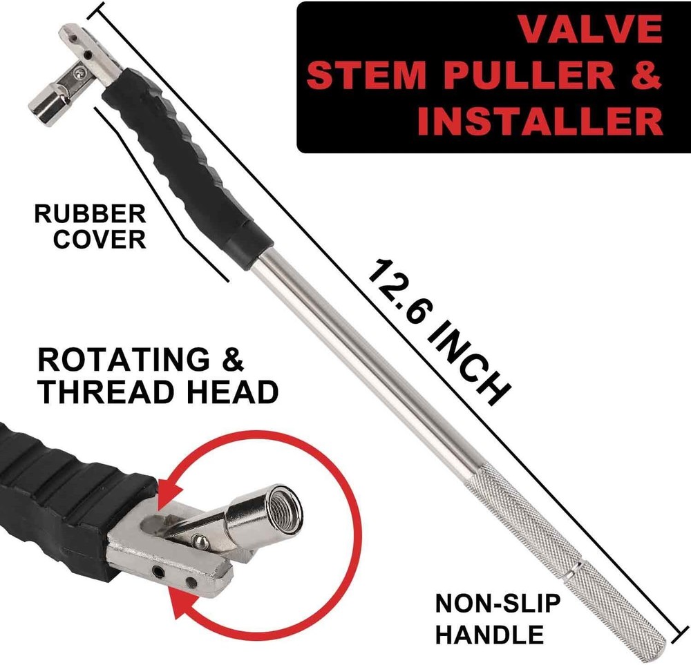 Tire Valve Stem Tool Puller And Installer Kit 4pcs Tr413 Tubeless Snapin Valve S OFF-SET HEAD - Unlike other straight heads, Hromee valve stem remover and Installer is designed with a off-set and pivoting head, more convenient and easier to use. There is the thread inside the swivel head for screwing into cap that makes you install and remove valve stems without removing the valve core. The pivoting head is for optimal angle. PROTECTIVE DESIGN - On the handle part knurled finish steel is designed for increasing friction and ensure safety while using. The rubber bumper is for protecting wheel and rim from damage. 12.6-inches long to provide more leverage necessary to remove stubborn valve stems with less effort. This remover and installer definitely a good helper for changing the valve stem. TR413 VALVE STEM - Snap-in rubber car tire valve stems for tubeless 0.453” (11.5mm) diameter rim holes. Outside EPDM rubber is for ozone resistance. Apply for 65 PSI max cold inflation pressure and max rim thickness of 0.156”. fits cars, light trucks, small trailers, wheelbarrows, lawn mowers, ATVs, and motorcycles. Slotted-Head Valve Cap - 2 Pieces of valve remover caps are equipped in this kit. 2 in 1 valve caps are made of premium material, strong and durable to use. The top slot head can be used to remove valve cores and the bottom can be used as tire caps to prevent air leaking and dust. The little caps are made of highest quality nickel-plated brass and with a seal washer inside. SINGLE HEAD REMOVER - All the accessories in this kit includes single head valve remover and 4 pieces valve cores. The valve stem core tool is plastic & stainless steel and with a handy pocket clip beside for easy carrying. The completed valve stem replacement tool kit is a perfect one for removing old leaky or faulty valve stems. Shipping We offer FREE shipping on all orders! We ship within Three business days of payment, usually sooner. We use a selection of shipping services such as UPS, FedEx, USPS etc. We only ship to the lower 48 states, no APO/FPO addresses or PO Boxes allowed. Local pickups and combined shipping options are not provided at this time. Return You can return a product for up to 30 days from the date you purchased it. Any product you return must be in the same condition you received it and in the original packaging. Please keep the receipt. Customer satisfaction is very important to us. If you have any problem with your order, please contact us and we will do our best to make you satisfied. Contact Us If you have any queries, please contact us via ebay. We usually respond within 24 hours on weekdays. Please visit our eBay store to check out other items for sale! Thank you for shopping at our store.