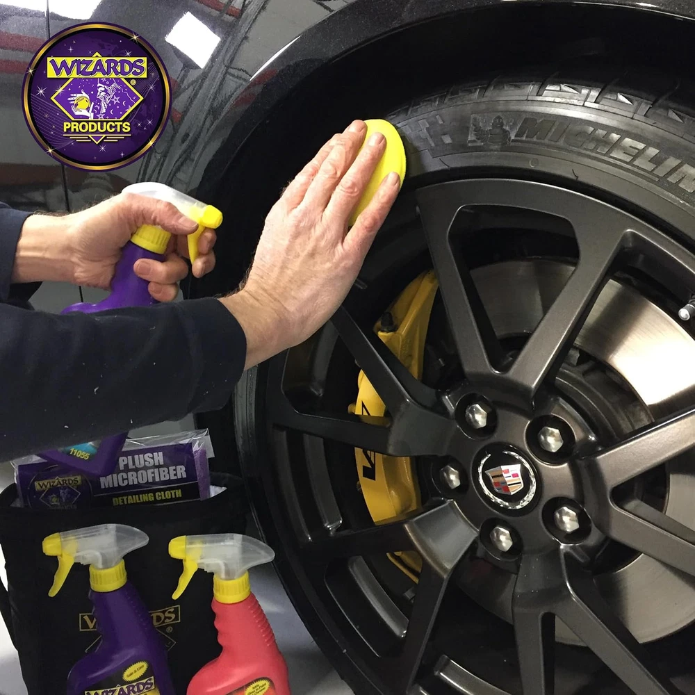 MULTIPURPOSE DRESSING AND PROTECTANT SPRAY - This versatile detailing spray beautifies tires, trim, vinyl, and rubber while enhancing dashboards and steering wheels. It revives tires, bumpers, and vinyl tops, delivering UV protection and professional car care in one step. RESTORES TIRE SHINE AND RICH COLOR - Achieve a natural, dust-free tire finish with this professional tire spray. It forms a protective shield against UV rays and road grime, enhances the color of rubber, and prevents spray sling, offering long-lasting results for tire care. CREATES A SHOW-WINNING FINISH - This tire and wheel spray restores shine with a matte detail touch, adds gloss, and offers UV protectant benefits. Free from petroleum distillates, it ensures stitching preservation while adding a fresh scent for a complete detailing solution. EASY AND CLEAN APPLICATION EVERY TIME - This non-greasy tire and vinyl dressing simplifies car care with hassle-free application. Buff tires, vinyl, and wheels effortlessly to create a polished finish with just one coat, making it perfect for inclusion in any car care kit. VERSATILE FOR INTERIOR AND EXTERIOR DETAILING - Enhance your vehicle with this multi-use tire and vinyl dressing that cleans and protects dashboards, trim, and rubber surfaces while restoring the look of tires, bumpers, and vinyl tops. A professional-grade solution for comprehensive car care. Product description Wizard Products Tire & Vinyl Shine Spray Tire Dressing and Protectant Spray for Automotive Detailing The Wizards Tire & Vinyl Shine Spray is auniversal tire restore, tire care and vinyl spray that gives you a great look without greasy oily excess on your tires. It works as a cleaner and protectant for all vinyl, leather and plastic surfaces in your car, boat or truck. This anti-static auto protectant also works well for seats and is non-slippery & non-greasy. Black Tire Shine for Automotive Detailing The Tire & Vinyl Shine Spray forms a dry shield and brings out the rich color of your tire without attracting dust or slinging onto your paint. It works hard to restore shine and add gloss to the desired tires with each application. It was designed to help protect from road grime and UV sun, making your tires look as good as the day you got them. What Makes Us Wizards? At Wizard Products, we strive to develop the best car cleaners and detailing tools since 1986. We formulate, blend and package our own products with exclusive formulas and owner involvement. Our customers tell us we have the best high-gloss polish, sealants, spray wax, rubbing compounds and detailing products available today. Try Wizards polishes and waxes and you'll be amazed by the results! Easy to Use! Easy to Apply This universal tire restore spray helps you take care of your tires the right way. It is easy to apply and does not have any greasy oil excess and works great with just one coat. Use by Hand Best used with a foam applicator pad, by hand, or spray directly onto the surface, allowing time for it to soak in for that natural black tire shine. This spray forms a dry shield that brings out the rich color of your tire without attracting dust. Fast Cut High Gloss This tire spray is not an oily high glossy spray. It contains no petroleum distillates so it won’t attack or rot stitching on seats. This also works great as a car leather protectant spray and will give your interior a great aroma with its fresh scent. Show Winning Gloss This spray will restore, add new shine, and will protect from road grime and UV sun rays. Works great to protect all vinyl, leather and plastic surfaces in your car, boat or truck. Professional Grade Automotive & Motorcycle Detailing, Shining and Finish Protection Product Made for Car & Motorcycle Enthusiasts Wizards Products bring exceptional exterior car polishing supplies right to your doorstep, no need to go anywhere to get that professional shine! For Best Results Power Clean The Power Clean is an all-purpose cleaner and degreaser that cleans tires and raised white letters. It works hard to dissolve oil, road grime, and brake dust. It is safe for interiors, dashboards, seats, floors and works well as a spot remover for carpets. It contains safe surfactants, non-caustic, and contains no acid. Never run out of this product again and purchase the refill size of 1 Gallon. Black Renew Black renew is a trim exterior treatment that cleans, renews, and protects all color exterior, textured, plastic, and rubber trim on automobiles. This works on all colors but should not be used on shoe polish or dye. It works hard to instantly remove embedded wax and white residue. It is great for faded fairing interiors and the concentrated cream outlasts the sprays. Comes in bottles of 8 oz. Metal Polish The Metal Polish is polish infused cotton that works to shine all metals with fast cutting and high gloss protection. It works to brighten and protect aluminum, chrome, stainless, brass, copper, nickel, etc. It removes tarnish, corrosion, oxidation, brake dust and tar. It was designed to be safe for coated wheels, motorcycles and household applications, polished metals, rails, handles, tie ups, and moldings. Comes in a container with 3 oz. Metal Renew The Metal Renew Polish is liquid polish for all metals. It was designed to fast cut and provide high gloss. With our easy to apply and remove liquid form, it makes for a less messy use. It brightens and renews aluminum, brass, stainless steel, and chrome. With its creamy emulsion, it does not require constant shaking like other polishes. Comes in bottles of 8 oz. and 32 oz.