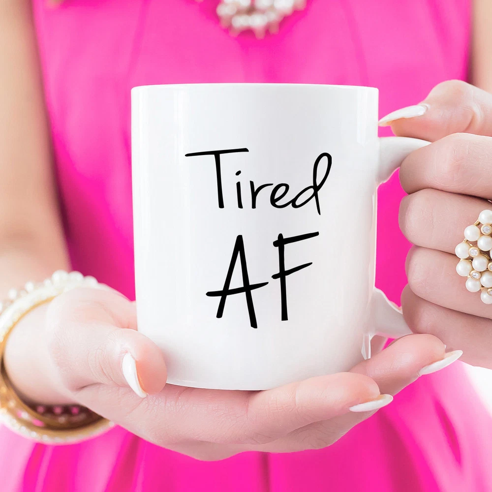 Tired Af Ceramic Coffee Mug New Mom Toddlers Student Mug Graduation Gift Tired Product Details.. This high quality 11oz. ceramic white mug has a premium hard coat that provides crisp and vibrant color reproduction sure to last for years. Perfect for all hot & cold beverages. The highest quality printing possible is used. It will never fade no matter how many times you wash it. Material: 100% Ceramic. Print both sides. Dishwasher and Microwave Safe. High Gloss + Premium White Finish. Printed in the U.S.A. Personalized & Custom. We support personalized and custom mug to add custom, when placing an order, you can add notes to the "order note" in shipping address section. Also you can contact us directly via message. Shipping Info. Ready to ship in 1 to 2 business days, All products are made-to-order and proudly printed in the United States. Shipped by USPS and DHL, You will receive your order in 5-7 days. Replace & Refund. All products are defective during shipping broken, chipped will be replaced free of charge. You are not satisfied with the product, we will refund 100% money to you. If any other issues arise, please do not hesitate to message, we would be more than happy to assist you.