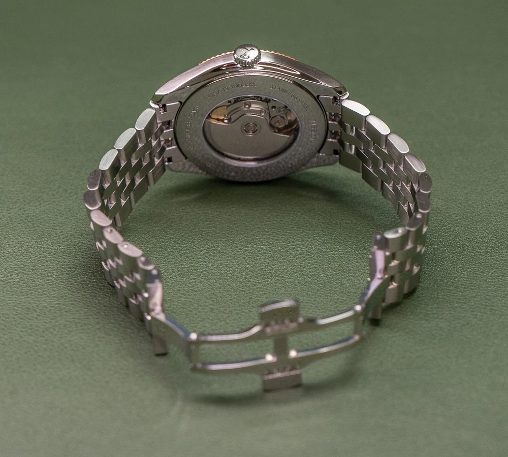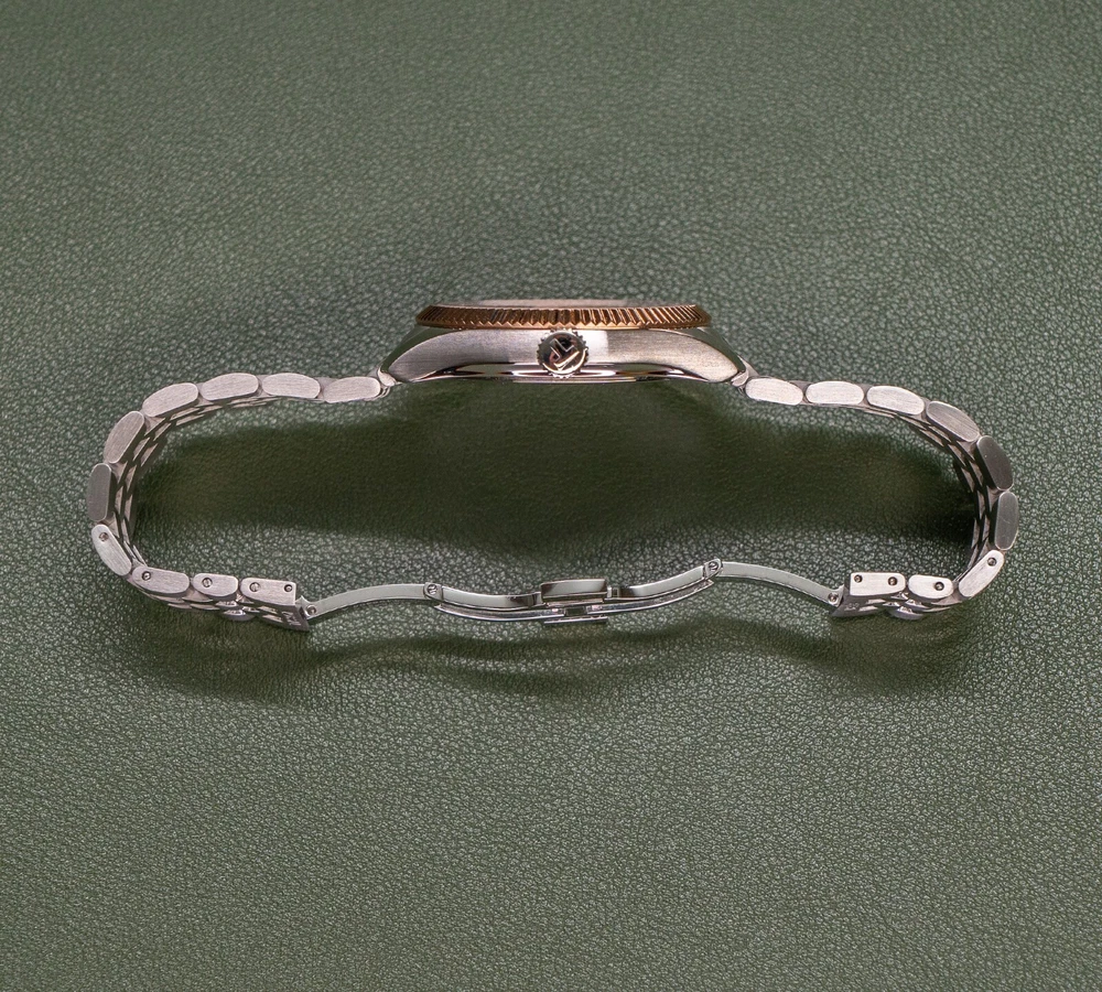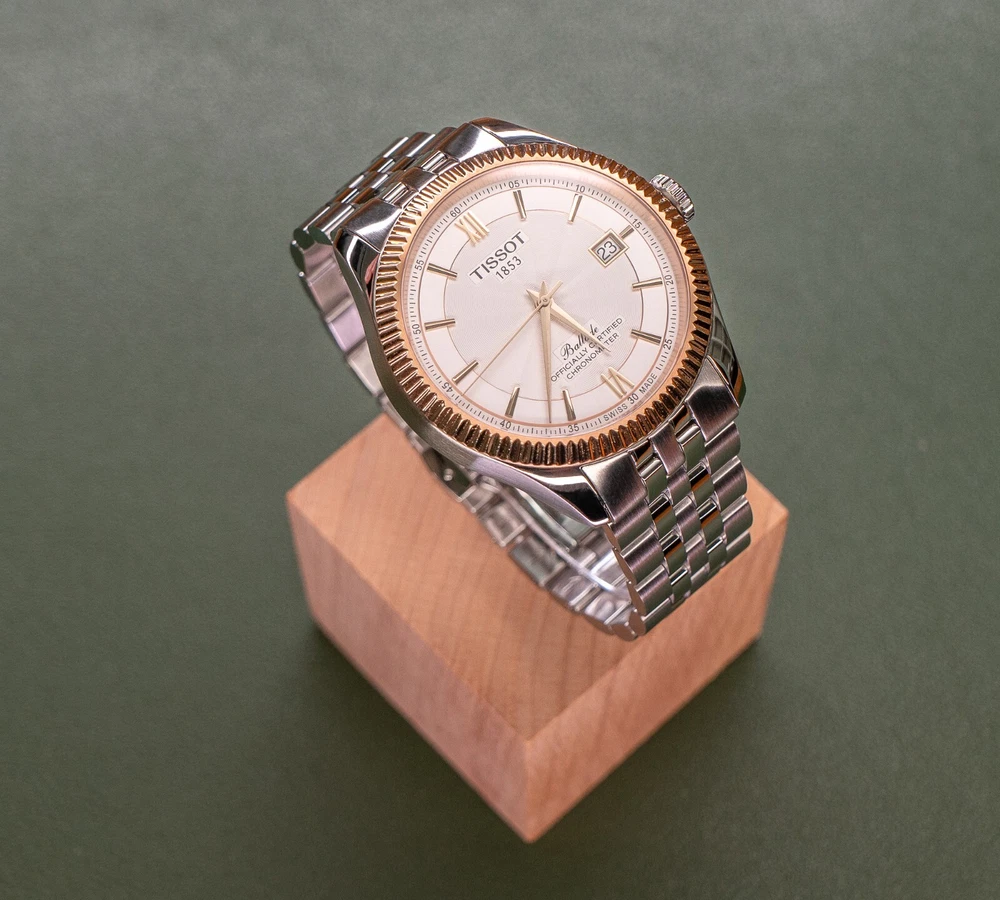 THIS WATCH INCLUDES TWO BRACELET OPTIONS: The stock two-toned rose gold bracelet with butterfly clasp, and the identical construction all-steel version of the same bracelet with butterfly clasp (an additional $250 retail value). The second bracelet was provided by Tissot and includes the original packaging. The dual bracelet option allows for additional flexibility that allows you to chose exactly how much two-toned goodness that you want to wear. Both bracelets quickly interchange with standard springbars, and are currently sized for a 7.5 inch wrist with additional links provided. This watch also includes a Tissot canvas zipper tote bag. TISSOT BALLADE POWERMATIC 80 SILICIUM The Tissot Ballade Powermatic 80 Silicium functions as one of Tissot's flagship models in their brand line up, offering an incredibly refined and sleek model that is great for both the seasoned collector and the high-end consumer alike. With the combination of fluted bezel, gilloche dial to sector dial layout, the ballade takes on a traditional look of elegance that you would often need to pay many thousands of dollars to achieve. The beauty of the Ballade design is the marriage of capability utilising Tissot's construction, both with highly competent movements and durable materials, placed into a platform that can take the knocks of daily life. If you've been looking for a semi-formal watch that can be worn in business formal environments, then dressed down to more casual events with the right strap and bracelet combination, the Ballade is a fantastic choice. This watch is now discontinued and is becoming quite rare and hard to find as a brand new watch. At the pinnacle of Tissot's platform and movement design, The Ballade COSC Silicium uses Tissot's high-end Powermatic Silicium COSC 80-81 movement that offers an 80 hour power reserve that is Swiss Chronometer Certified (COSC). Thanks to the Silicium model's silicone balance spring, the watch maintains a greater level of magnetic resistance when compared to regular watches with a steel balance spring. NOTE: The Powermatic 80 Silicium 80-81 movement is not the same movement used in the PRX. Due to the COSC requirements, the Silicium movement does not use the plastic escapement from the PRX and lower powermatic models. The Powermatic 80 Silicium COSC sits at the top of Tissot's current movement design and capabilities, as the most rugged and accurate movement available in the greater Tissot lineup. Please google "Tissot Powermatic 80 Silicium" for Tissot's video on the movements unique capabilities if you're interested in more information. The watch employs a time-tested and classic two-toned stainless steel case that implements rose gold accents, through to the fine details on the watches' dial. The original bracelet also implements the rose gold accents, however with the secondary bracelet can be swapped over to the steel-only option on the second bracelet. The Ballade uses a surprisingly thin 41mm case design that wears on considerably smaller than the size would suggest, feeling closer to 39mm mm. The watch uses 20mm lugs, making this one an incredible strap monster, capable of taking a range of formal and casual straps. The watch also uses saphire crystal front and back, to increase the durability and scratch resistance of the model. The Tissot Ballade Powermatic 80 Silicium offers an incredible platform to those looking for a more formal watch that doesn't need to be babied or handled with extreme care. While the watch has more formal-looks, the construction, materials and movement scream sports watch, giving the wearer an incredibly accurate and tough watch, that would look completely at home on in a corporate boardroom while also being fully capable on the hiking trail. The Ballade model became the halo watch of the Tissot brand, sitting above even the Gentlemen and PRX models as something a little bit special. This watch is brand new and was purchased for photography and review. The watch includes the original box, manuals, packaging, warranty card, and the additional packaging form the second bracelet. This watch was never worn outside of the photo studio and is in new condition, however there may be very minor surface scratches on the underside of the watch and bracelet from the photography process. The watch case and crystal are immaculate with no signs of wear. This watch sells and ships from Canada and is available for purchase internationally. The buyer assumes responsibility for import duties and taxes on international orders placed outside of Canada. Please refer to your government's websites for imports and international purchases for more information specific to your region. WATCH SPECIFICATIONS: Case Size 41 Case Thickness 9.6 mm Case Material Stainless Steel Case Shape Round Case Back Display Band Band Material Stainless Steel Band Type Bracelet Band Color Two-tone (Silver-tone and Rose Gold PVD), Stainless Steel Band Width 20 mm Clasp Butterfly Dial Dial Color Silver Opaline Type Analog Crystal Scratch Resistant Sapphire Hands Rose Gold-tone Dial Markers Index Second Markers Roman Numerals appear at the 6 and 12 o'clock positions. Arabic Numeral Minute Markers (at 5 minute intervals). Minute Markers around the outer rim Bezel Fixed Bezel Color Rose Gold PVD Bezel Material Stainless Steel Crown Pull / Push Information Brand Tissot Collection Name Ballade Gender Mens Model T108.408.22.278.00 Watch Label Swiss Made Movement Automatic Engine Powermatic 80.811 Power Reserve 80 hours Features Water Resistance 50 meters / 165 feet Calendar Date display at the 3 o'clock position Functions Date, Hour, Minute, Second, Chronometer Watch Features Analog, Stainless Steel, Gold, Chronometer Certified (COSC)