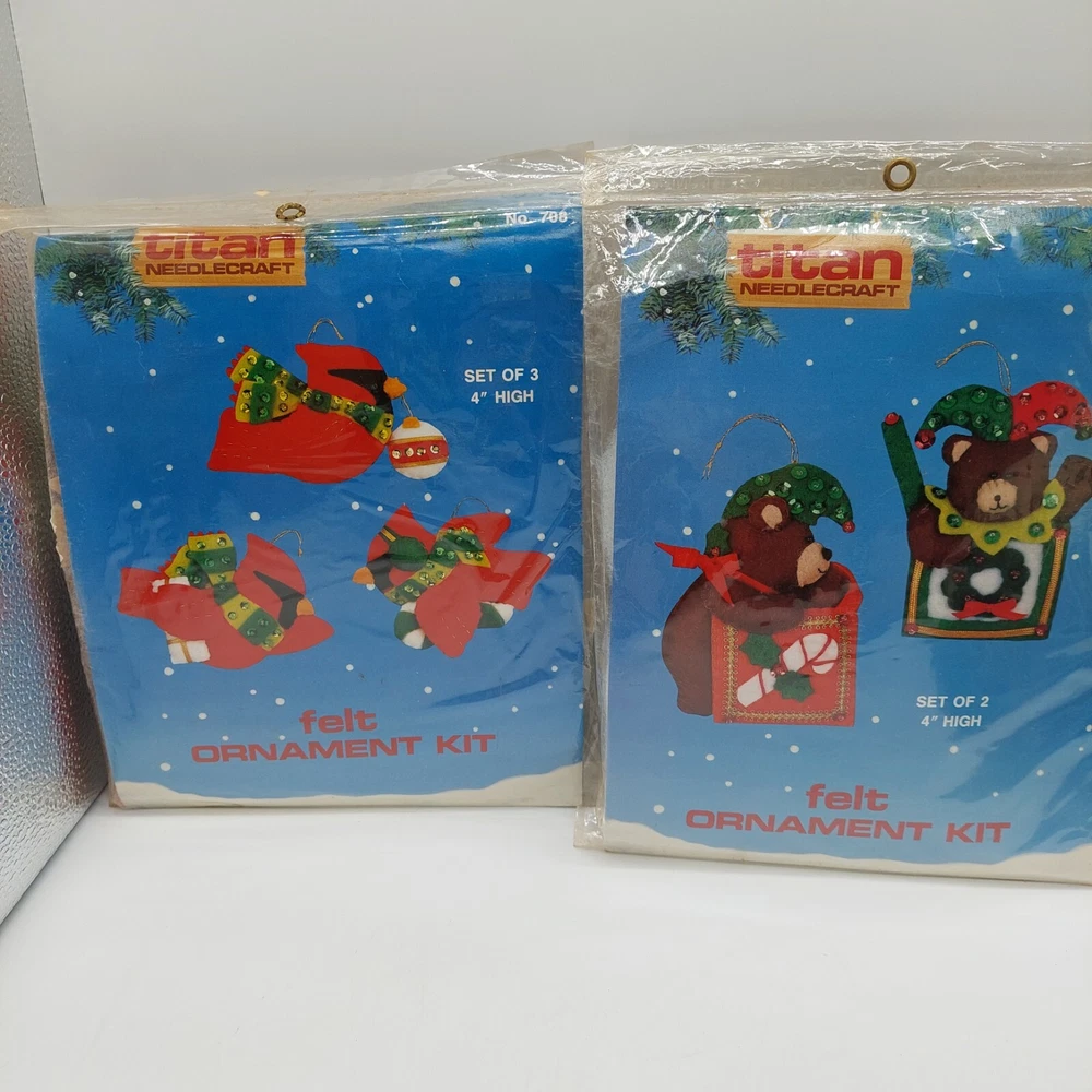 Titan Needlecraft Felt Cardinals Teddy Bear Ornament Kit Lot Of 2 Vintage