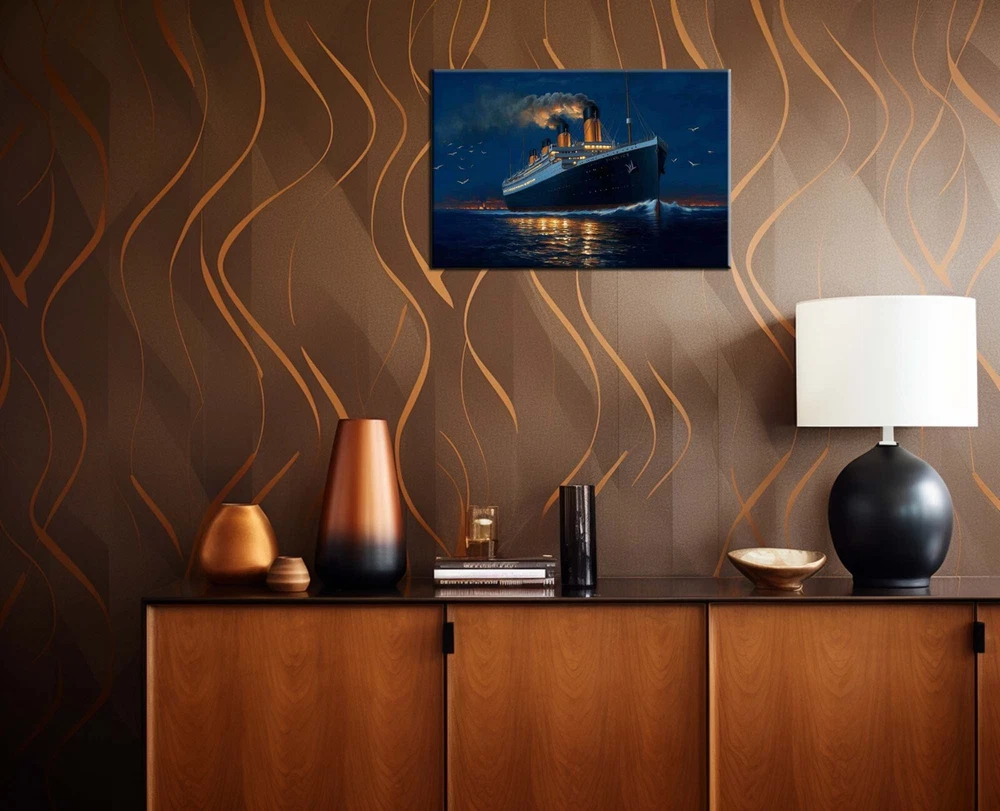 Titanic at Night Art Prints,Nautical Wall Art Decor,Historical Ship Prints,03