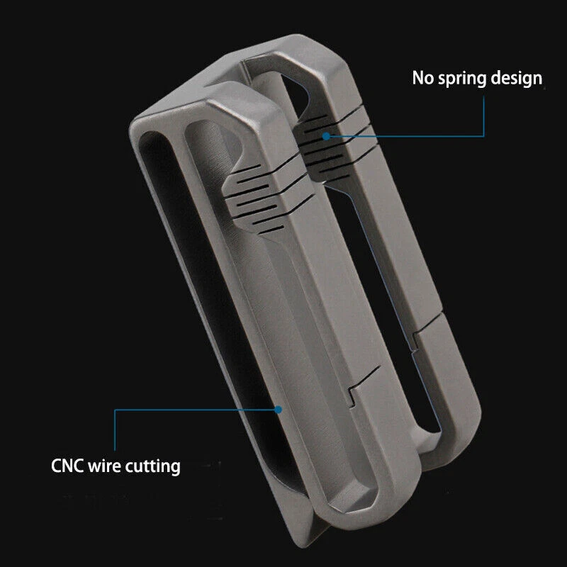 You must know before you buy Made of solid TC4 titanium alloy integrally formed, CNC wire cutting process. No spring design, one-piece molding, more durable. Double-breasted design, easy to use and versatile. Can be used on belts up to 40mm in diameter. Size: Length 51mm, Width 25mm, Thickness 15mm Suitable for belts with a diameter of less than 40mm, Thickness less than 5mm . Surface: Gray Weight: About 27g Package Included: 1pcs Titanium alloy Waist Hanging Note: 1): Due to the different monitor and light effect, the actual color of the item might be slightly different from the color showed on the pictures. 2): The size Weight of the product is measured manually, there will be a certain error, please understand. 3): Because the factory batch is different, so there may be a small difference, please refer to the goods actually received pls make sure you do not mind before you bid. Hope you can understand. Thank you!