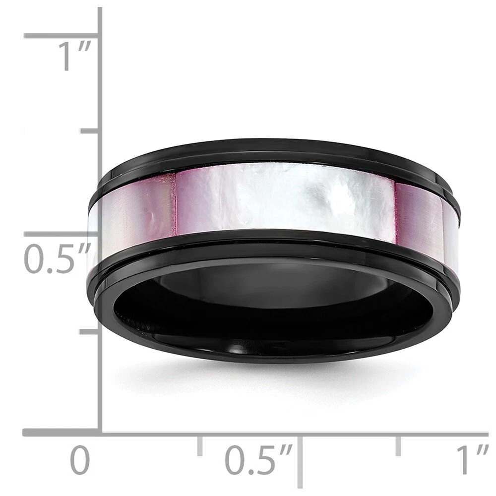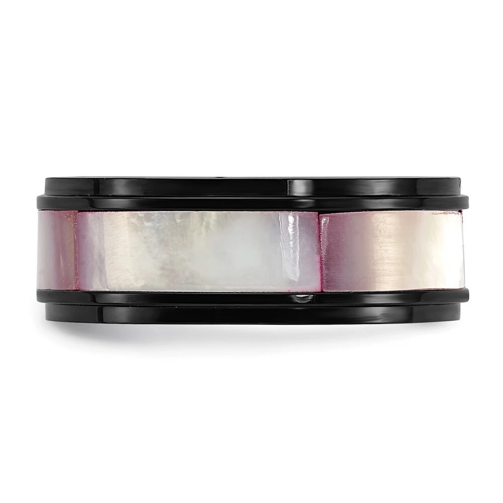 Finish:Polished|Plating:IP-Plated|Material: Accent Color 1:Multi-colored|Band Width:8 mm|Material: Primary:Titanium|Sizeable:No|Item Weight U/M:gm|Width of Item:8 mm|Engravable:Yes|Packaging:Gift Pouch|Product Type:Jewelry|Jewelry Type:Rings|Sold By Unit:Each|Gender:Unisex|Material: Inlay:Mother of Pearl|Material: Primary - Color:Grey|Ring Type:Wedding Bands|Edge Type:Ridged|Plating Color:Black|Ring Shape:Flat All weights and measurements are approximate and may vary slightly from the listed information. Welcome to diamond_6720 Payments We accept all Ebay approved payment. Please sent the payment to us within 8 days after the auction has ended, or you will have unpaid case auto open by eBay. Shipping Policy We will ship all items within 1 business days of purchase during the work week (M-F) excluding holidays. If you order on Friday, your order will be shipped the following business day. Tracking will be provided when it becomes available. We will only ship to a PayPal Verified Address. Please make sure your address is current and correct. If the information does not match, your order may be canceled. Buyers are responsible for all customs, duties and taxes for your respective countries. Delivery times for International Shipping will vary. California Buyers Pay 9.0% Tax on all orders. case auto open by eBay. Return Policy & Exchange Returns or Exchange are accepted. Buyer must contact us within 30 days after the item is received. Item must be returned in unworn and resalable condition. We will only issue a refund for the purchase price, excluding any shipping fees. If we are at fault, we will provide a full refund. Buyer is responsible for all return shipping costs. BUYERS FEEDBACK If you have any concerns regarding your purchase, please contact us via eBay Message, we assure you that a satisfactory resolution will be reached. Your feedback is very important to us Do remember to give us 5 star rating(*****) if you are satisfied with our product & service .