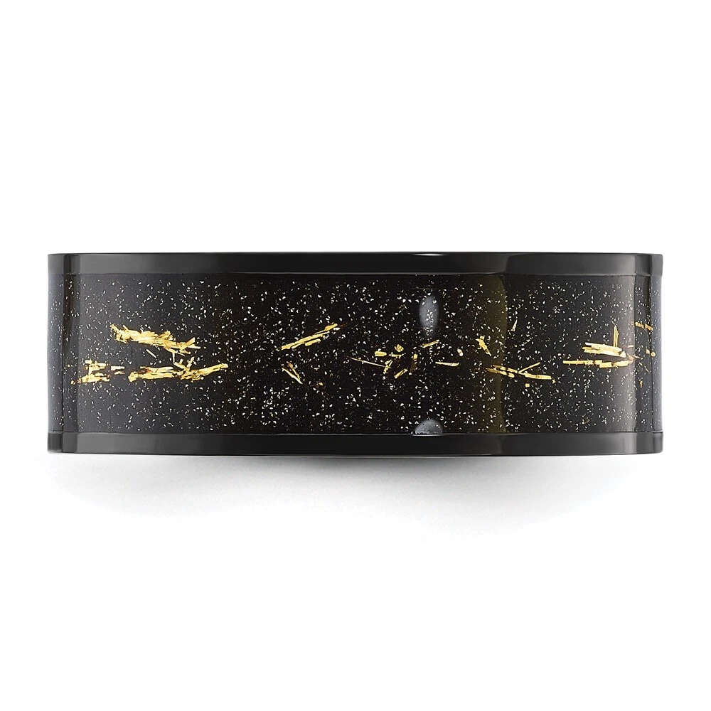 Titanium Black IP-plated with Black and Gold Foil Inlay 8mm Band Ring Size 7
