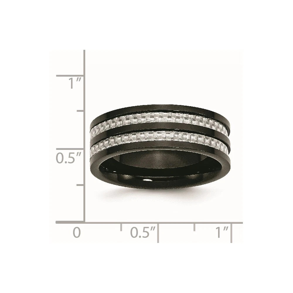 Titanium Black IP-plated with Grey Carbon Fiber Inlay 8mm Band Ring Size 9
