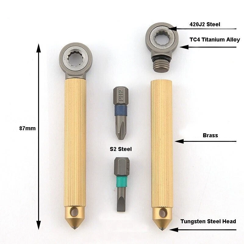 You must know before you buy Material: TC4 Titanium Alloy, Brass Length: 87mm Weight: About 35g(Brass), About 27g(Titanium) Package Included: 1pcs Multi Tools( have 1pcs Slotted Screwdriver and 1pcs Phillips Screwdriver) Note: 1): Due to the different monitor and light effect, the actual color of the item might be slightly different from the color showed on the pictures. 2): The size Weight of the product is measured manually, there will be a certain error, please understand. 3): Because the factory batch is different, so there may be a small difference, please refer to the goods actually received pls make sure you do not mind before you bid. Hope you can understand. Thank you!