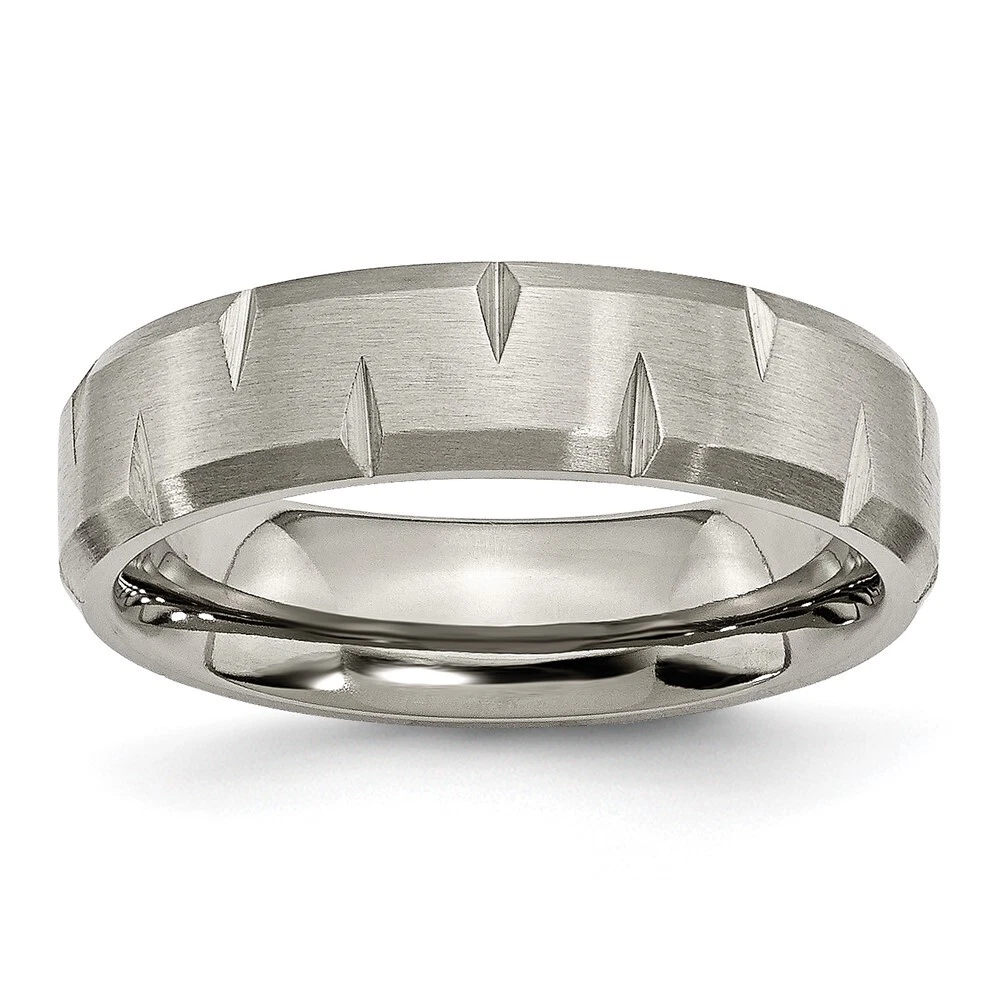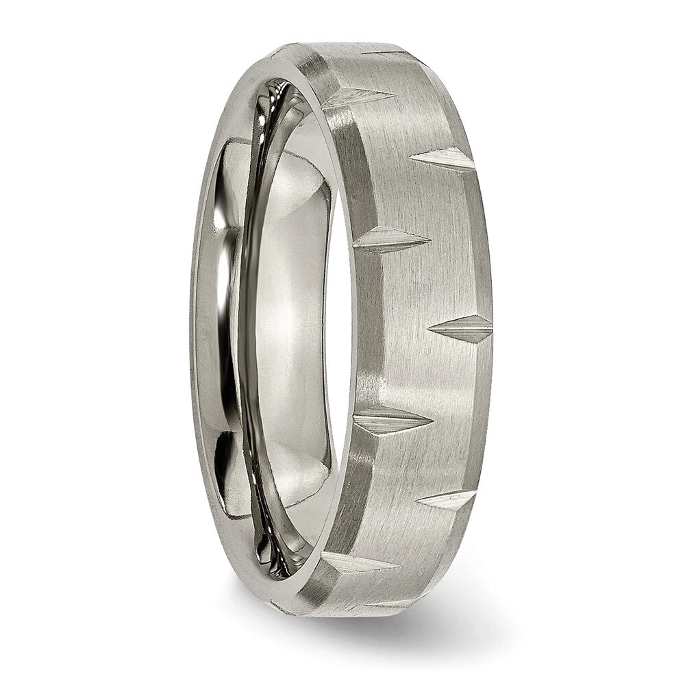 Finish:Brushed|Band Width:6 mm|Material: Primary:Titanium|Ring Fit:Standard|Sizeable:No|Thickness:< 2 mm|Item Weight U/M:gm|Width of Item:6 mm|Engravable:Yes|Packaging:Gift Pouch|Product Type:Jewelry|Jewelry Type:Rings|Sold By Unit:Each|Gender:Unisex|Material: Primary - Color:Grey|Ring Type:Wedding Bands|Edge Type:Beveled All weights and measurements are approximate and may vary slightly from the listed information. Welcome to diamond_6720 Payments We accept all Ebay approved payment. Please sent the payment to us within 8 days after the auction has ended, or you will have unpaid case auto open by eBay. Shipping Policy We will ship all items within 1 business days of purchase during the work week (M-F) excluding holidays. If you order on Friday, your order will be shipped the following business day. Tracking will be provided when it becomes available. We will only ship to a PayPal Verified Address. Please make sure your address is current and correct. If the information does not match, your order may be canceled. Buyers are responsible for all customs, duties and taxes for your respective countries. Delivery times for International Shipping will vary. California Buyers Pay 9.0% Tax on all orders. case auto open by eBay. Return Policy & Exchange Returns or Exchange are accepted. Buyer must contact us within 30 days after the item is received. Item must be returned in unworn and resalable condition. We will only issue a refund for the purchase price, excluding any shipping fees. If we are at fault, we will provide a full refund. Buyer is responsible for all return shipping costs. BUYERS FEEDBACK If you have any concerns regarding your purchase, please contact us via eBay Message, we assure you that a satisfactory resolution will be reached. Your feedback is very important to us Do remember to give us 5 star rating(*****) if you are satisfied with our product & service .