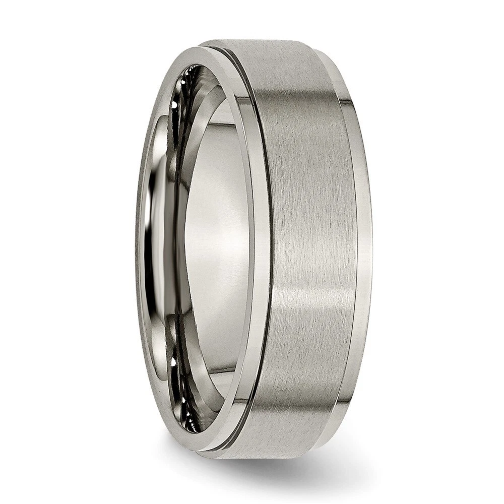 Finish:Polished & Brushed|Band Width:7 mm|Material: Primary:Titanium|Ring Fit:Comfort|Sizeable:No|Thickness:< 2 mm|Item Weight U/M:gm|Width of Item:7 mm|Engravable:Yes|Packaging:Gift Pouch|Product Type:Jewelry|Jewelry Type:Rings|Sold By Unit:Each|Gender:Unisex|Material: Primary - Color:Grey|Ring Type:Wedding Bands|Edge Type:Ridged|Ring Shape:Flat All weights and measurements are approximate and may vary slightly from the listed information. Welcome to diamond_6720 Payments We accept all Ebay approved payment. Please sent the payment to us within 8 days after the auction has ended, or you will have unpaid case auto open by eBay. Shipping Policy We will ship all items within 1 business days of purchase during the work week (M-F) excluding holidays. If you order on Friday, your order will be shipped the following business day. Tracking will be provided when it becomes available. We will only ship to a PayPal Verified Address. Please make sure your address is current and correct. If the information does not match, your order may be canceled. Buyers are responsible for all customs, duties and taxes for your respective countries. Delivery times for International Shipping will vary. California Buyers Pay 9.0% Tax on all orders. case auto open by eBay. Return Policy & Exchange Returns or Exchange are accepted. Buyer must contact us within 30 days after the item is received. Item must be returned in unworn and resalable condition. We will only issue a refund for the purchase price, excluding any shipping fees. If we are at fault, we will provide a full refund. Buyer is responsible for all return shipping costs. BUYERS FEEDBACK If you have any concerns regarding your purchase, please contact us via eBay Message, we assure you that a satisfactory resolution will be reached. Your feedback is very important to us Do remember to give us 5 star rating(*****) if you are satisfied with our product & service .