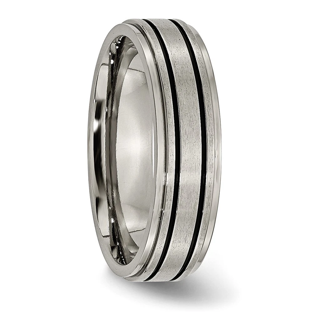 Finish:Polished & Brushed|Material: Accents:Enamel|Material: Accent Color 1:Black|Band Width:6 mm|Material: Primary:Titanium|Ring Fit:Standard|Sizeable:No|Thickness:< 2 mm|Item Weight U/M:gm|Width of Item:6 mm|Engravable:Yes|Packaging:Gift Pouch|Product Type:Jewelry|Jewelry Type:Rings|Sold By Unit:Each|Gender:Unisex|Texture:Satin|Material: Primary - Color:Grey|Ring Type:Wedding Bands|Edge Type:Flat|Ring Shape:Flat All weights and measurements are approximate and may vary slightly from the listed information. Welcome to diamond_6720 Payments We accept all Ebay approved payment. Please sent the payment to us within 8 days after the auction has ended, or you will have unpaid case auto open by eBay. Shipping Policy We will ship all items within 1 business days of purchase during the work week (M-F) excluding holidays. If you order on Friday, your order will be shipped the following business day. Tracking will be provided when it becomes available. We will only ship to a PayPal Verified Address. Please make sure your address is current and correct. If the information does not match, your order may be canceled. Buyers are responsible for all customs, duties and taxes for your respective countries. Delivery times for International Shipping will vary. California Buyers Pay 9.0% Tax on all orders. case auto open by eBay. Return Policy & Exchange Returns or Exchange are accepted. Buyer must contact us within 30 days after the item is received. Item must be returned in unworn and resalable condition. We will only issue a refund for the purchase price, excluding any shipping fees. If we are at fault, we will provide a full refund. Buyer is responsible for all return shipping costs. BUYERS FEEDBACK If you have any concerns regarding your purchase, please contact us via eBay Message, we assure you that a satisfactory resolution will be reached. Your feedback is very important to us Do remember to give us 5 star rating(*****) if you are satisfied with our product & service .