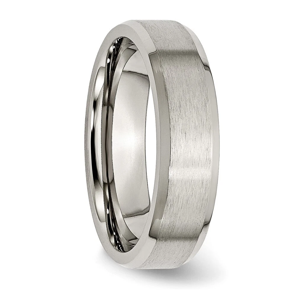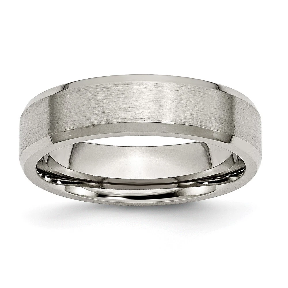 Titanium Brushed and Polished 6mm Beveled Edge Band Ring Size 12