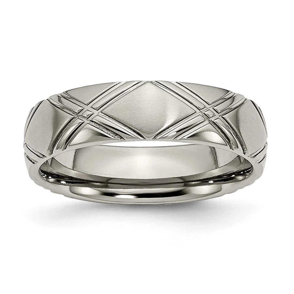 Titanium Brushed and Polished 6mm Criss-cross Design Band Ring Size 7