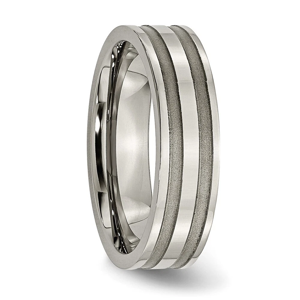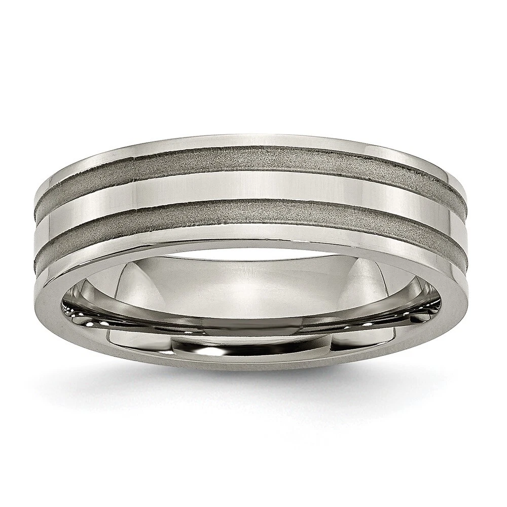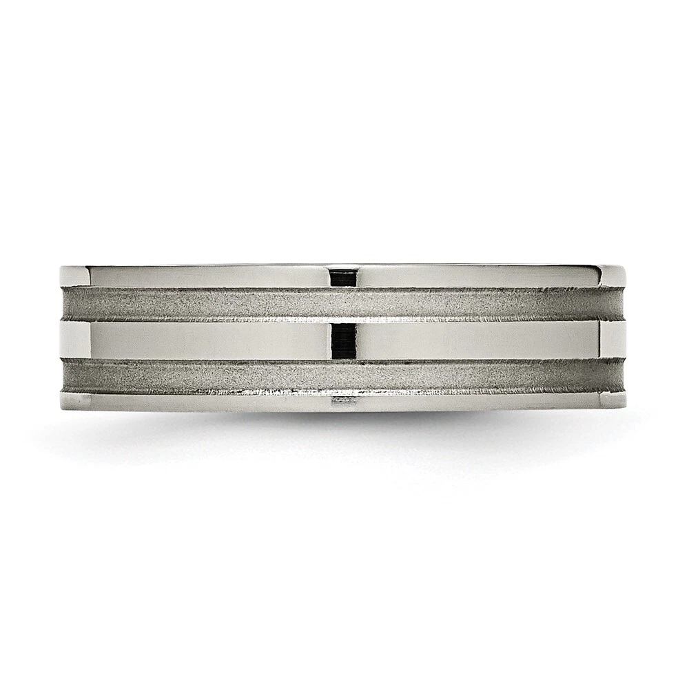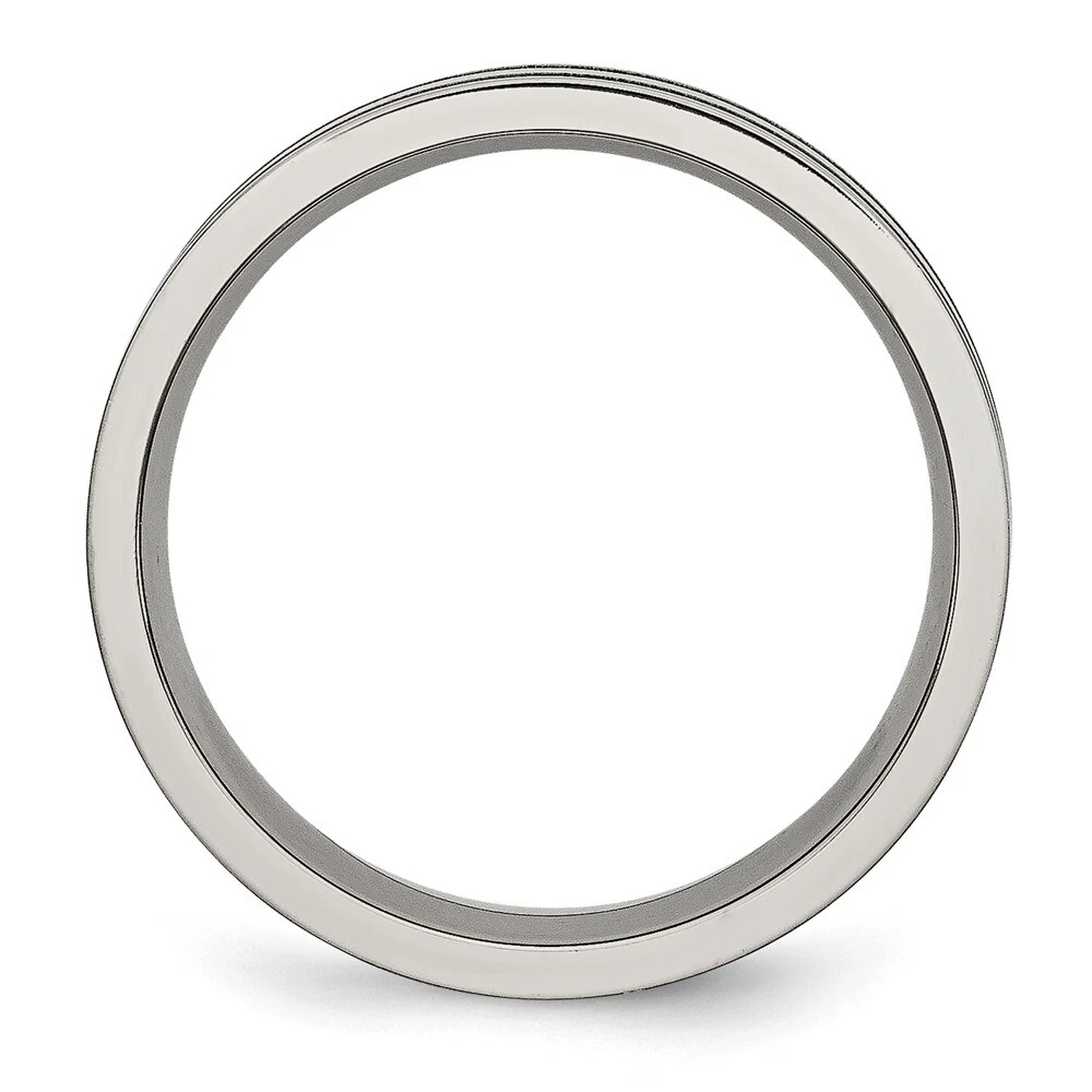 Titanium Brushed and Polished 6mm Grooved Band Ring Size 6 for Men 3.43gm