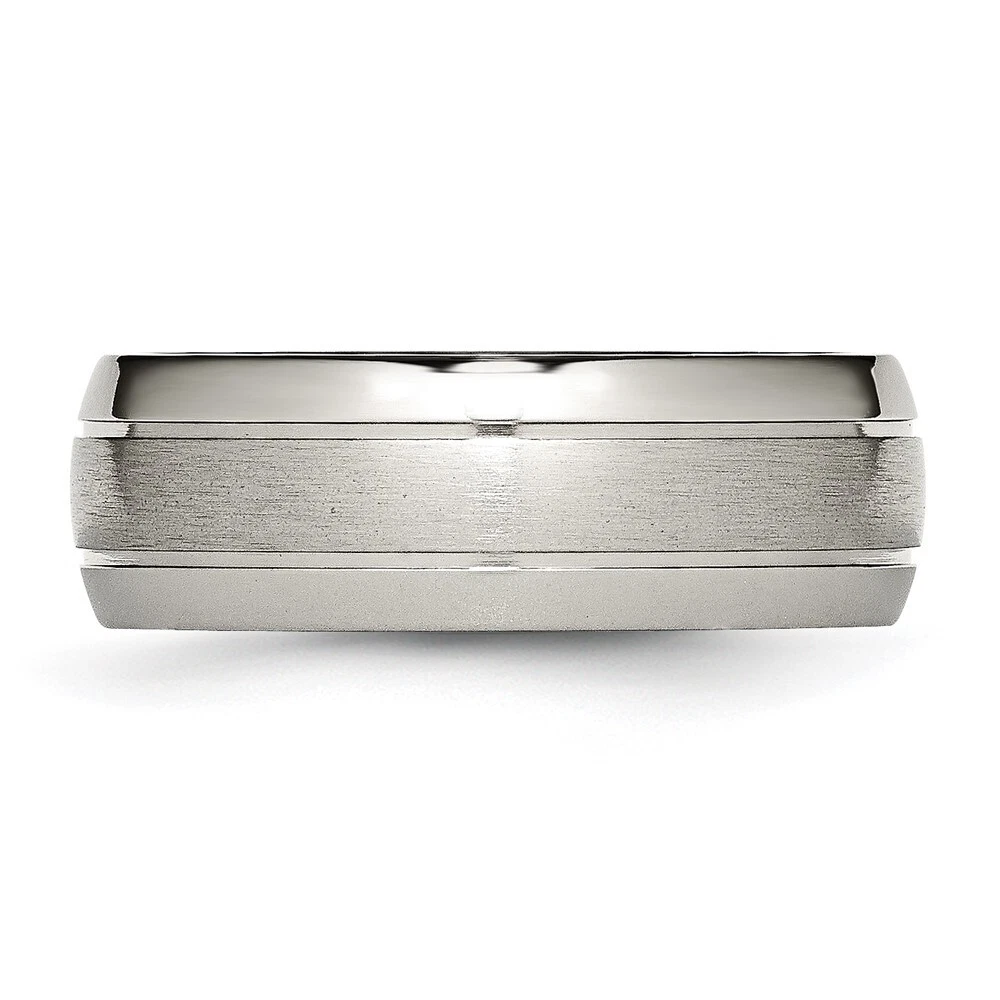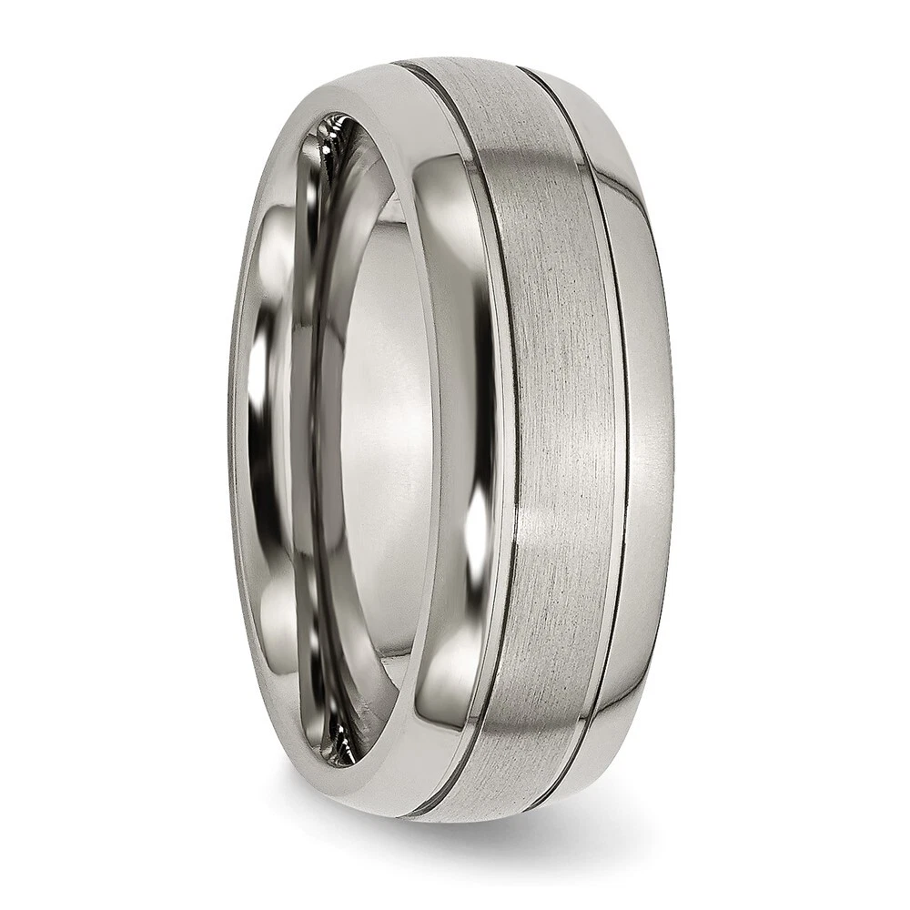 Finish:Polished & Brushed|Band Width:8 mm|Material: Primary:Titanium|Ring Fit:Comfort|Sizeable:No|Thickness:< 2.5 mm|Item Weight U/M:gm|Width of Item:8 mm|Engravable:Yes|Packaging:Gift Pouch|Product Type:Jewelry|Jewelry Type:Rings|Sold By Unit:Each|Gender:Unisex|Texture:Grooved|Material: Primary - Color:Grey|Ring Type:Wedding Bands|Edge Type:Flat|Ring Shape:Half Round All weights and measurements are approximate and may vary slightly from the listed information. Welcome to diamond_6720 Payments We accept all Ebay approved payment. Please sent the payment to us within 8 days after the auction has ended, or you will have unpaid case auto open by eBay. Shipping Policy We will ship all items within 1 business days of purchase during the work week (M-F) excluding holidays. If you order on Friday, your order will be shipped the following business day. Tracking will be provided when it becomes available. We will only ship to a PayPal Verified Address. Please make sure your address is current and correct. If the information does not match, your order may be canceled. Buyers are responsible for all customs, duties and taxes for your respective countries. Delivery times for International Shipping will vary. California Buyers Pay 9.0% Tax on all orders. case auto open by eBay. Return Policy & Exchange Returns or Exchange are accepted. Buyer must contact us within 30 days after the item is received. Item must be returned in unworn and resalable condition. We will only issue a refund for the purchase price, excluding any shipping fees. If we are at fault, we will provide a full refund. Buyer is responsible for all return shipping costs. BUYERS FEEDBACK If you have any concerns regarding your purchase, please contact us via eBay Message, we assure you that a satisfactory resolution will be reached. Your feedback is very important to us Do remember to give us 5 star rating(*****) if you are satisfied with our product & service .