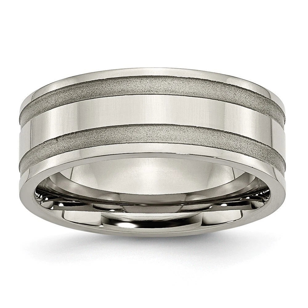 Finish:Polished & Brushed|Band Width:8 mm|Material: Primary:Titanium|Ring Fit:Standard|Sizeable:No|Thickness:< 2 mm|Item Weight U/M:gm|Width of Item:8 mm|Engravable:Yes|Packaging:Gift Pouch|Product Type:Jewelry|Jewelry Type:Rings|Sold By Unit:Each|Gender:Unisex|Texture:Grooved|Material: Primary - Color:Grey|Ring Type:Wedding Bands|Edge Type:Flat|Ring Shape:Flat All weights and measurements are approximate and may vary slightly from the listed information. Welcome to diamond_6720 Payments We accept all Ebay approved payment. Please sent the payment to us within 8 days after the auction has ended, or you will have unpaid case auto open by eBay. Shipping Policy We will ship all items within 1 business days of purchase during the work week (M-F) excluding holidays. If you order on Friday, your order will be shipped the following business day. Tracking will be provided when it becomes available. We will only ship to a PayPal Verified Address. Please make sure your address is current and correct. If the information does not match, your order may be canceled. Buyers are responsible for all customs, duties and taxes for your respective countries. Delivery times for International Shipping will vary. California Buyers Pay 9.0% Tax on all orders. case auto open by eBay. Return Policy & Exchange Returns or Exchange are accepted. Buyer must contact us within 30 days after the item is received. Item must be returned in unworn and resalable condition. We will only issue a refund for the purchase price, excluding any shipping fees. If we are at fault, we will provide a full refund. Buyer is responsible for all return shipping costs. BUYERS FEEDBACK If you have any concerns regarding your purchase, please contact us via eBay Message, we assure you that a satisfactory resolution will be reached. Your feedback is very important to us Do remember to give us 5 star rating(*****) if you are satisfied with our product & service .