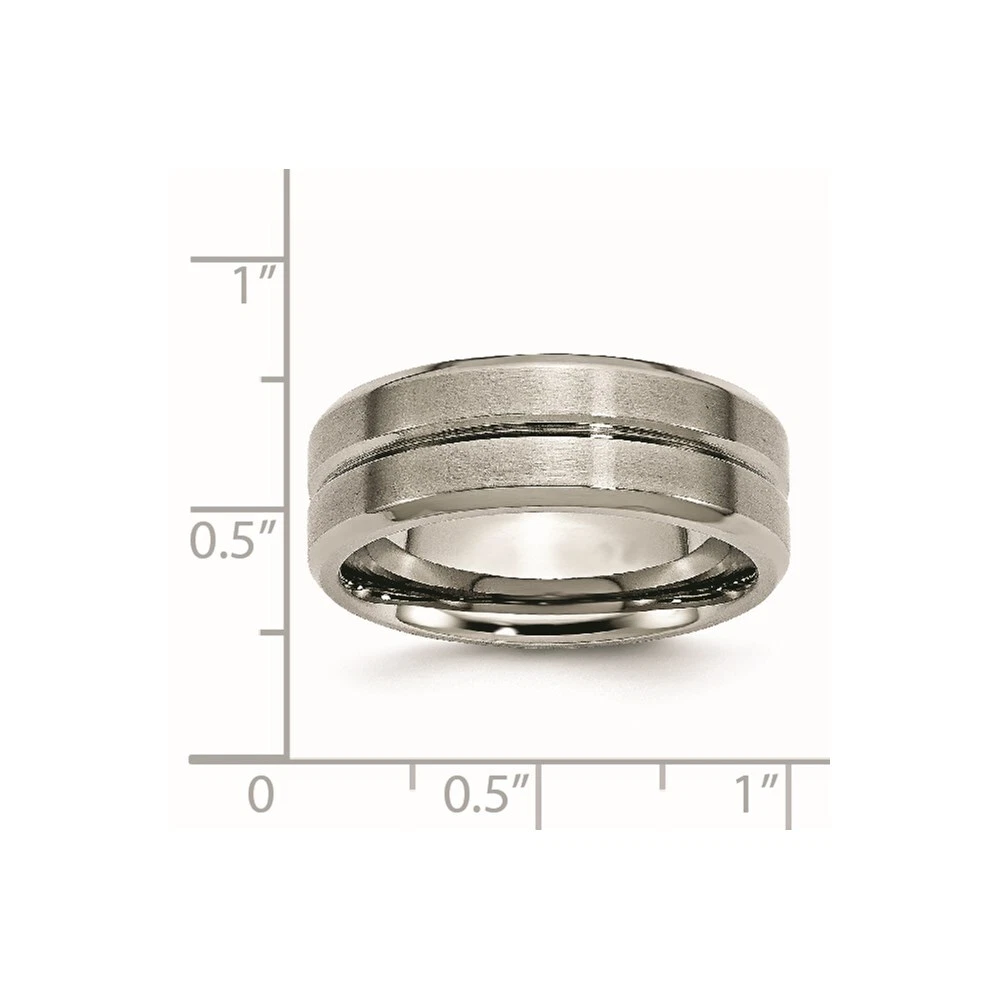 Finish:Polished & Brushed|Band Width:8 mm|Material: Primary:Titanium|Ring Fit:Comfort|Sizeable:No|Thickness:< 2.5 mm|Item Weight U/M:gm|Width of Item:8 mm|Engravable:Yes|Packaging:Gift Pouch|Product Type:Jewelry|Jewelry Type:Rings|Sold By Unit:Each|Gender:Unisex|Texture:Grooved|Material: Primary - Color:Grey|Ring Type:Wedding Bands|Edge Type:Beveled All weights and measurements are approximate and may vary slightly from the listed information. Welcome to diamond_6720 Payments We accept all Ebay approved payment. Please sent the payment to us within 8 days after the auction has ended, or you will have unpaid case auto open by eBay. Shipping Policy We will ship all items within 1 business days of purchase during the work week (M-F) excluding holidays. If you order on Friday, your order will be shipped the following business day. Tracking will be provided when it becomes available. We will only ship to a PayPal Verified Address. Please make sure your address is current and correct. If the information does not match, your order may be canceled. Buyers are responsible for all customs, duties and taxes for your respective countries. Delivery times for International Shipping will vary. California Buyers Pay 9.0% Tax on all orders. case auto open by eBay. Return Policy & Exchange Returns or Exchange are accepted. Buyer must contact us within 30 days after the item is received. Item must be returned in unworn and resalable condition. We will only issue a refund for the purchase price, excluding any shipping fees. If we are at fault, we will provide a full refund. Buyer is responsible for all return shipping costs. BUYERS FEEDBACK If you have any concerns regarding your purchase, please contact us via eBay Message, we assure you that a satisfactory resolution will be reached. Your feedback is very important to us Do remember to give us 5 star rating(*****) if you are satisfied with our product & service .