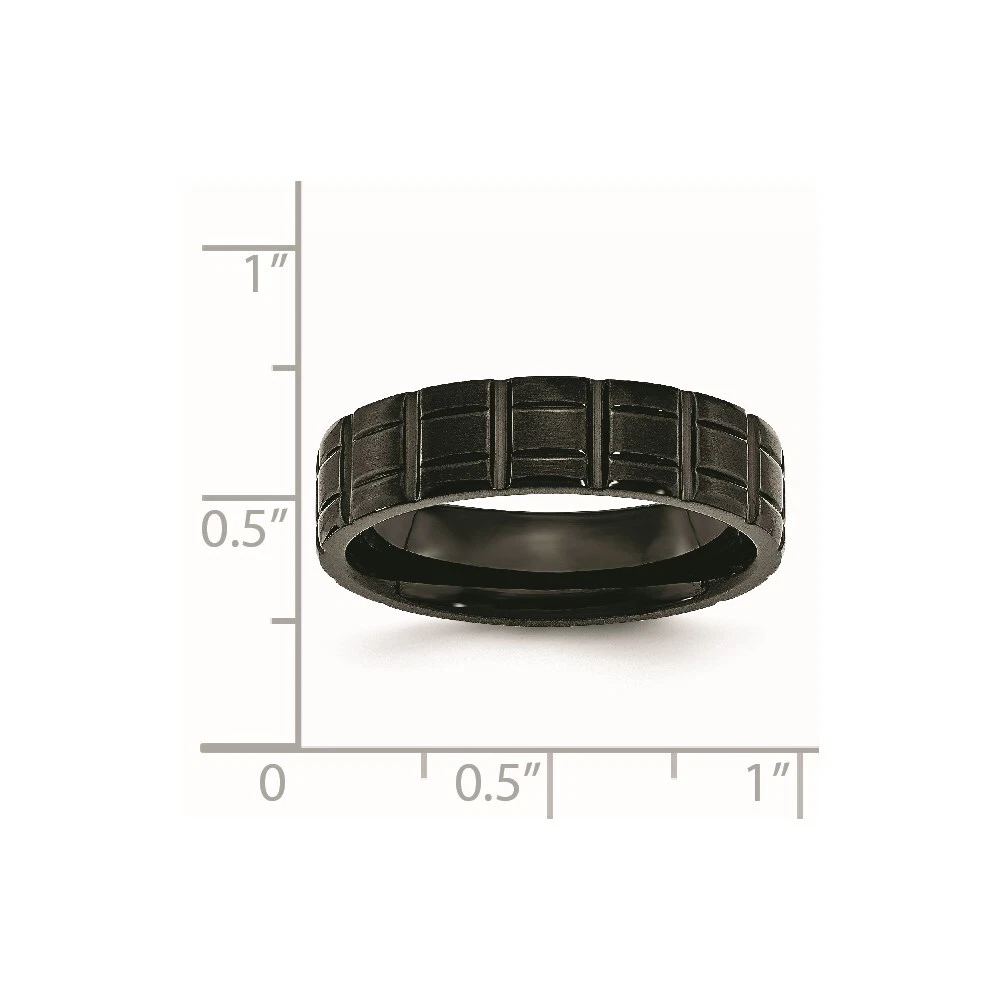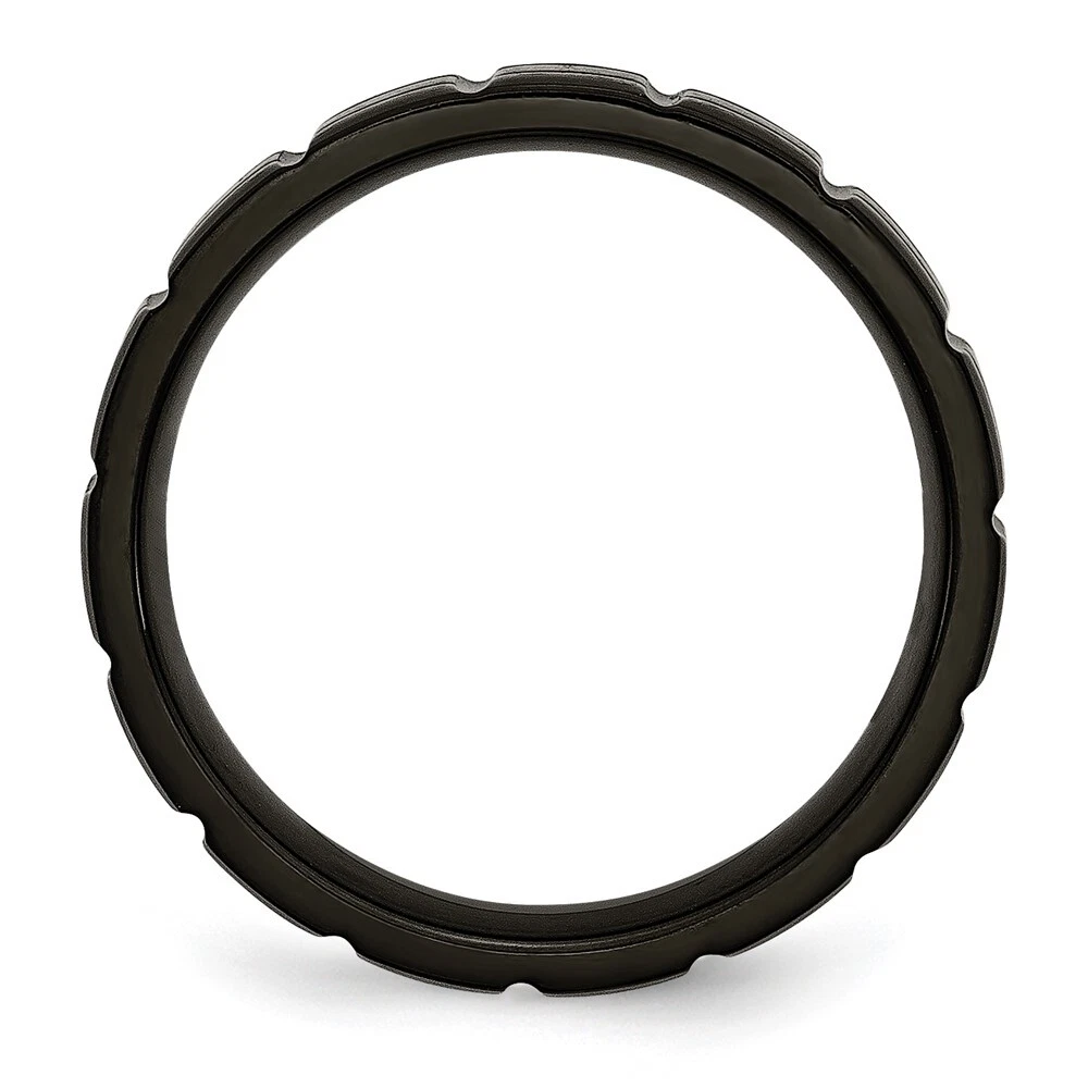 Titanium Brushed and Polished Black IP-plated 6mm Notched Band Ring Size 10