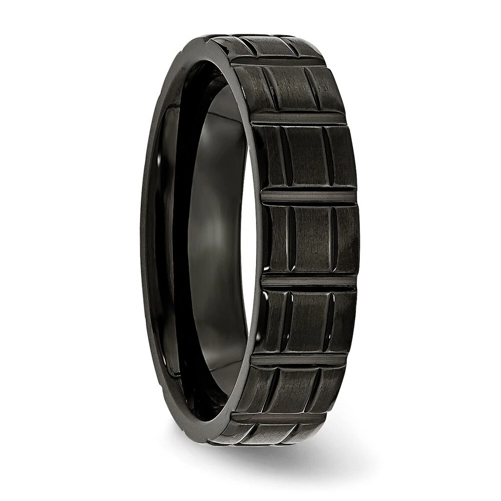 Titanium Brushed and Polished Black IP-plated 6mm Notched Band Ring Size 9