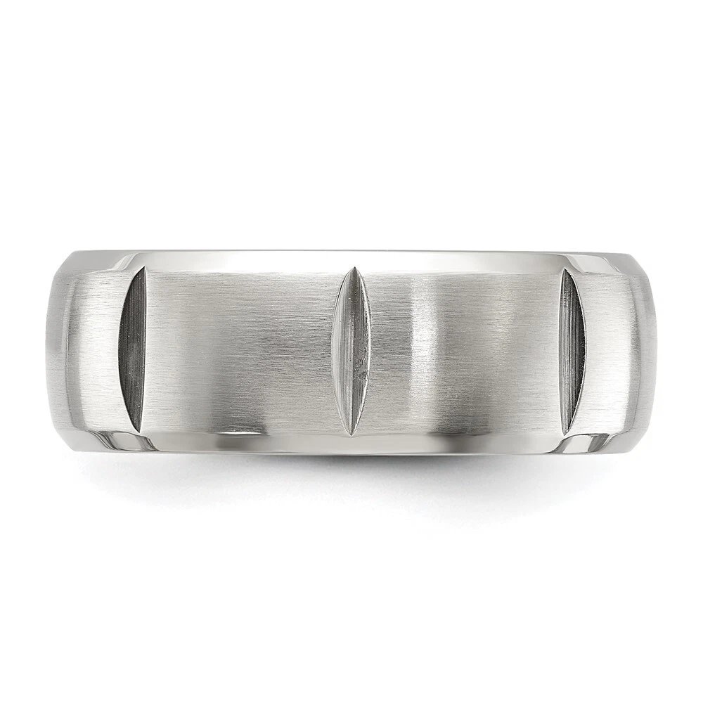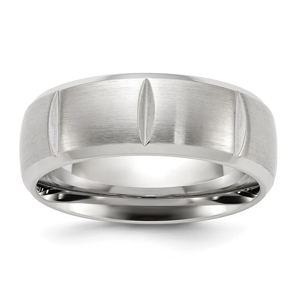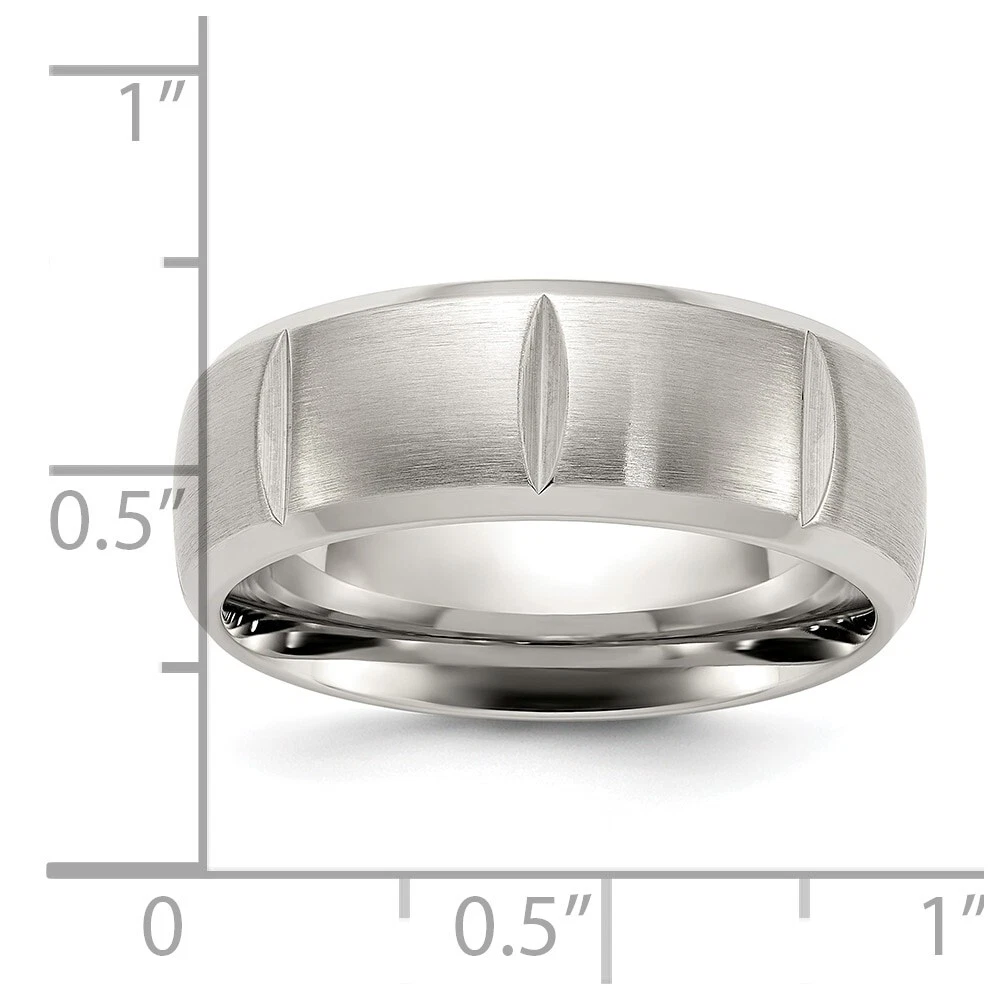 Titanium Brushed and Polished Grooved 8mm Band Ring Size 12 for Men 4.28gm