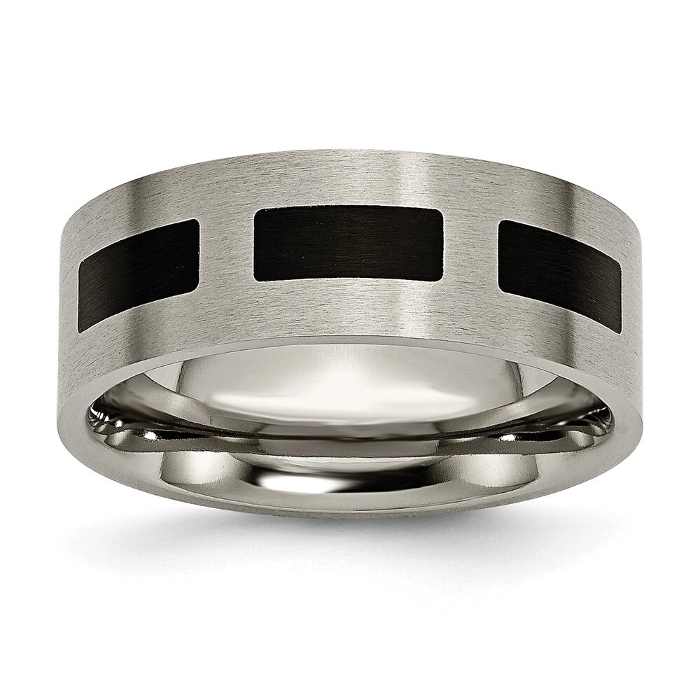 Finish:Brushed|Material: Accent Color 1:Black|Band Width:8 mm|Material: Primary:Titanium|Ring Fit:Standard|Sizeable:No|Thickness:< 2 mm|Item Weight U/M:gm|Width of Item:8 mm|Material: Other:Rubber|Engravable:Yes|Packaging:Gift Pouch|Product Type:Jewelry|Jewelry Type:Rings|Sold By Unit:Each|Gender:Unisex|Material: Primary - Color:Grey|Ring Type:Wedding Bands|Edge Type:Flat|Ring Shape:Flat All weights and measurements are approximate and may vary slightly from the listed information. Welcome to diamond_6720 Payments We accept all Ebay approved payment. Please sent the payment to us within 8 days after the auction has ended, or you will have unpaid case auto open by eBay. Shipping Policy We will ship all items within 1 business days of purchase during the work week (M-F) excluding holidays. If you order on Friday, your order will be shipped the following business day. Tracking will be provided when it becomes available. We will only ship to a PayPal Verified Address. Please make sure your address is current and correct. If the information does not match, your order may be canceled. Buyers are responsible for all customs, duties and taxes for your respective countries. Delivery times for International Shipping will vary. California Buyers Pay 9.0% Tax on all orders. case auto open by eBay. Return Policy & Exchange Returns or Exchange are accepted. Buyer must contact us within 30 days after the item is received. Item must be returned in unworn and resalable condition. We will only issue a refund for the purchase price, excluding any shipping fees. If we are at fault, we will provide a full refund. Buyer is responsible for all return shipping costs. BUYERS FEEDBACK If you have any concerns regarding your purchase, please contact us via eBay Message, we assure you that a satisfactory resolution will be reached. Your feedback is very important to us Do remember to give us 5 star rating(*****) if you are satisfied with our product & service .