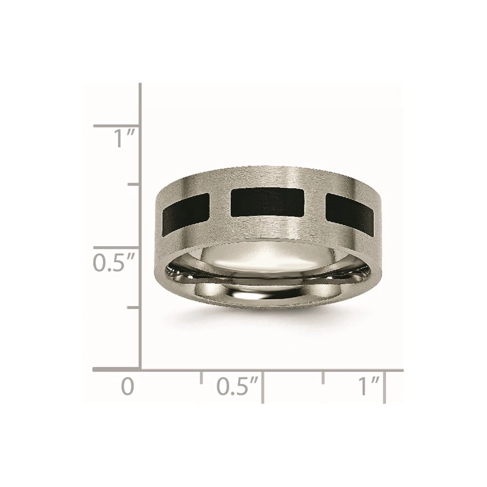 Titanium Brushed with Black Rubber 8mm Flat Band Ring Size 7