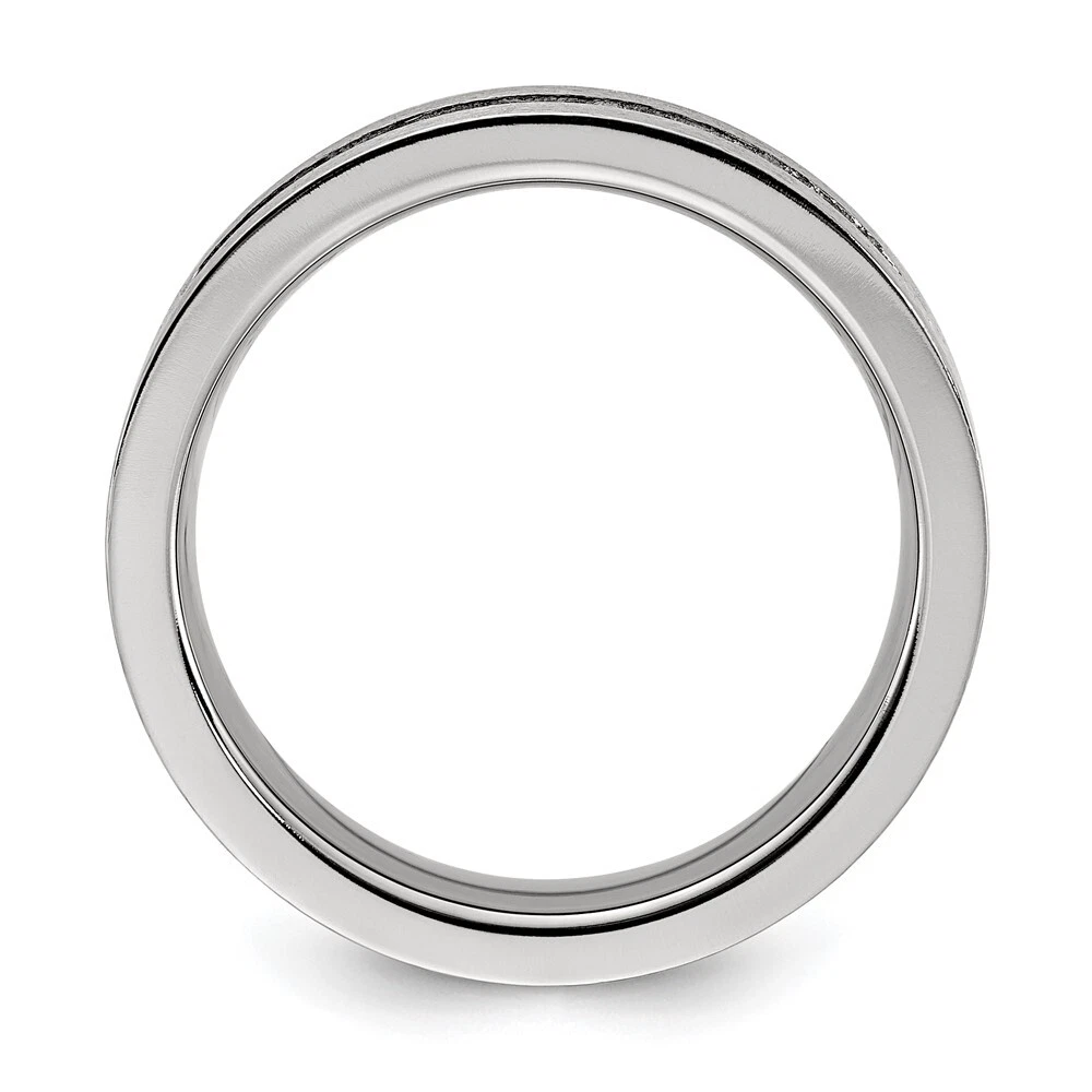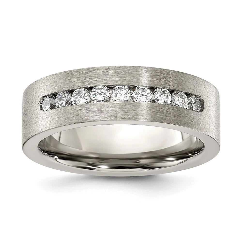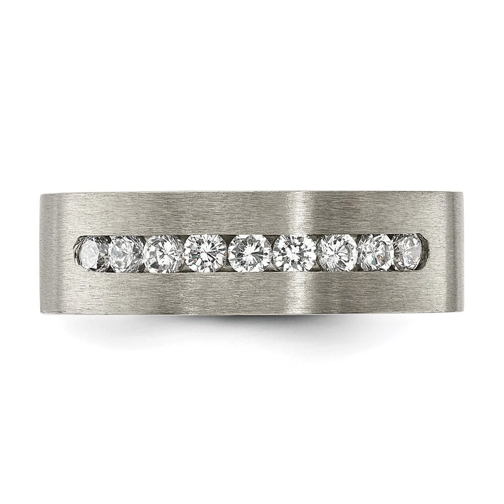 Titanium Brushed with Cubic Zirconia Flat 7mm Band Ring Size 12 for Men 4.94gm