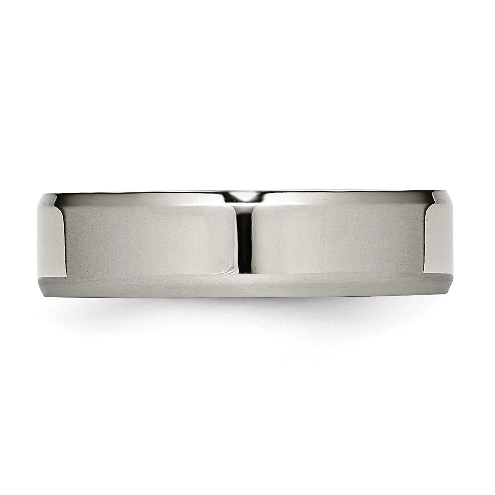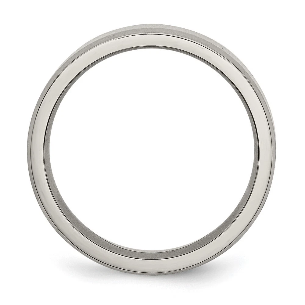 Titanium Polished 6mm Beveled Edge Band Ring Size 5 for Men 3.66gm