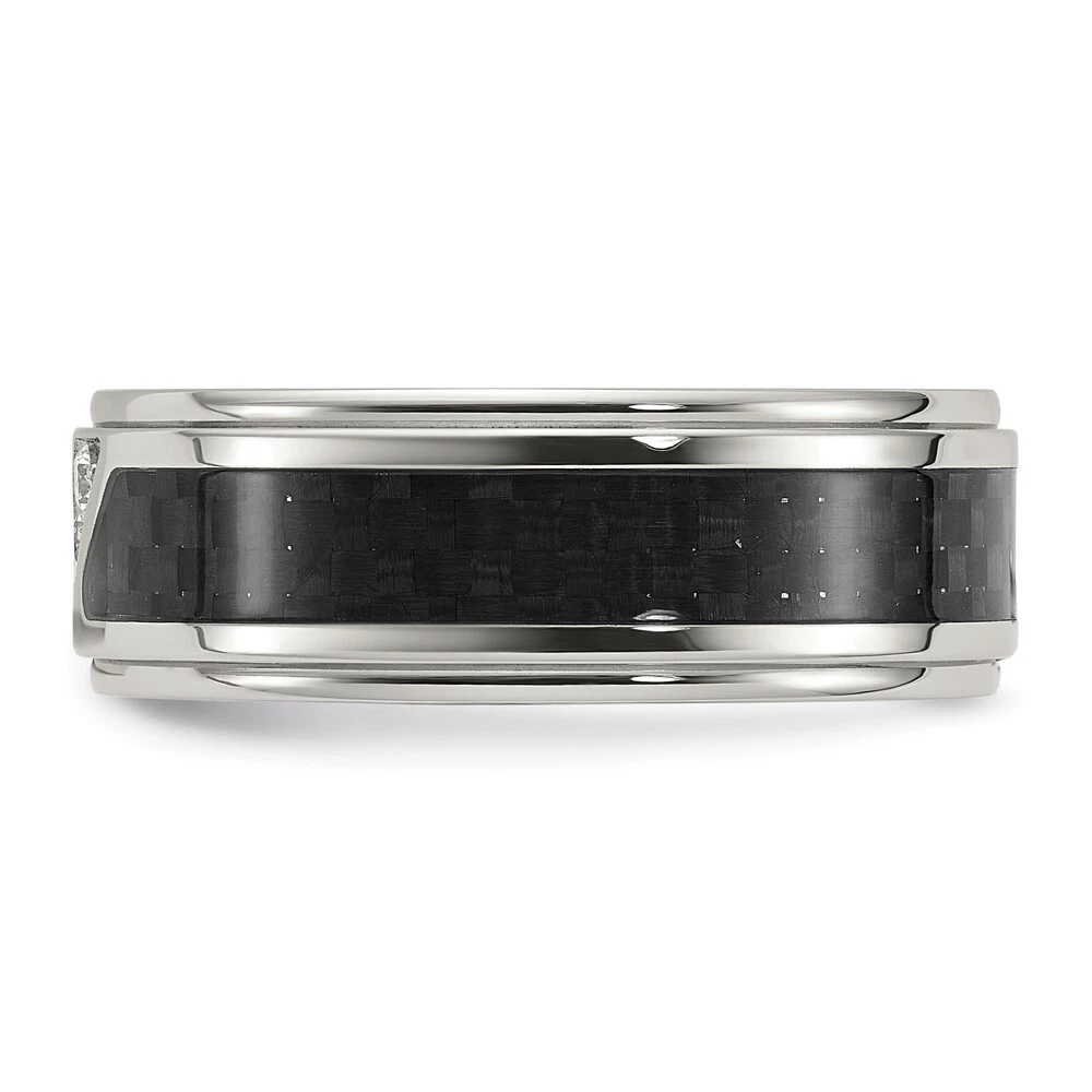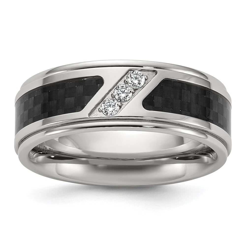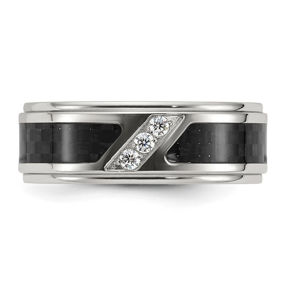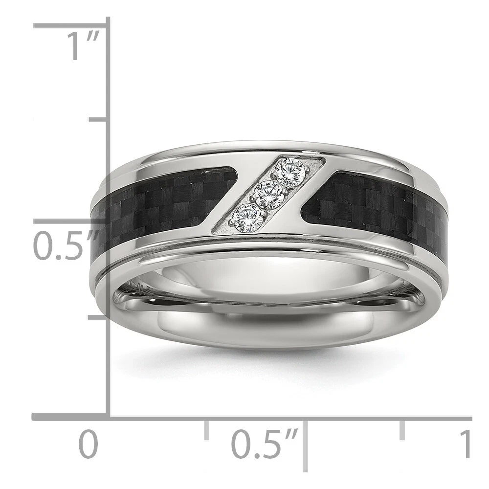 Titanium Polished Black Carbon Fiber Inlay Cubic Zirconia 8mm Band Ring Size 10