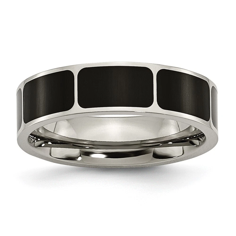 Finish:Polished|Material: Accents:Enamel|Material: Accent Color 1:Black|Band Width:6 mm|Material: Primary:Titanium|Ring Fit:Standard|Sizeable:No|Thickness:< 2 mm|Item Weight U/M:gm|Width of Item:6 mm|Engravable:Yes|Packaging:Gift Pouch|Product Type:Jewelry|Jewelry Type:Rings|Sold By Unit:Each|Gender:Unisex|Material: Primary - Color:Grey|Ring Type:Wedding Bands|Edge Type:Flat|Ring Shape:Flat All weights and measurements are approximate and may vary slightly from the listed information. Welcome to diamond_6720 Payments We accept all Ebay approved payment. Please sent the payment to us within 8 days after the auction has ended, or you will have unpaid case auto open by eBay. Shipping Policy We will ship all items within 1 business days of purchase during the work week (M-F) excluding holidays. If you order on Friday, your order will be shipped the following business day. Tracking will be provided when it becomes available. We will only ship to a PayPal Verified Address. Please make sure your address is current and correct. If the information does not match, your order may be canceled. Buyers are responsible for all customs, duties and taxes for your respective countries. Delivery times for International Shipping will vary. California Buyers Pay 9.0% Tax on all orders. case auto open by eBay. Return Policy & Exchange Returns or Exchange are accepted. Buyer must contact us within 30 days after the item is received. Item must be returned in unworn and resalable condition. We will only issue a refund for the purchase price, excluding any shipping fees. If we are at fault, we will provide a full refund. Buyer is responsible for all return shipping costs. BUYERS FEEDBACK If you have any concerns regarding your purchase, please contact us via eBay Message, we assure you that a satisfactory resolution will be reached. Your feedback is very important to us Do remember to give us 5 star rating(*****) if you are satisfied with our product & service .