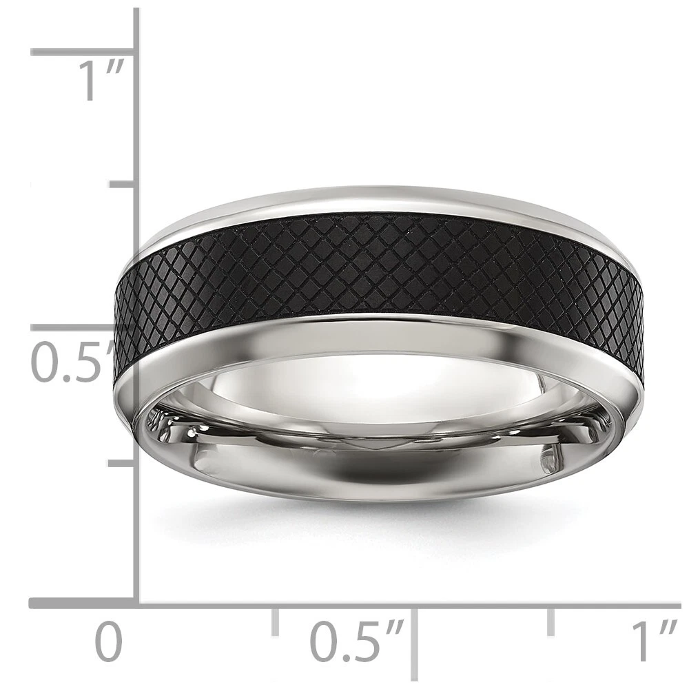 Titanium Polished Black IP-plated Textured Center 8mm Band Ring Size 12