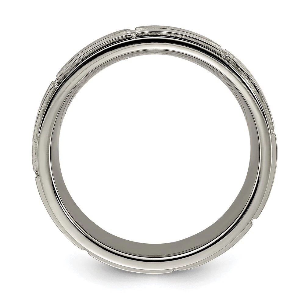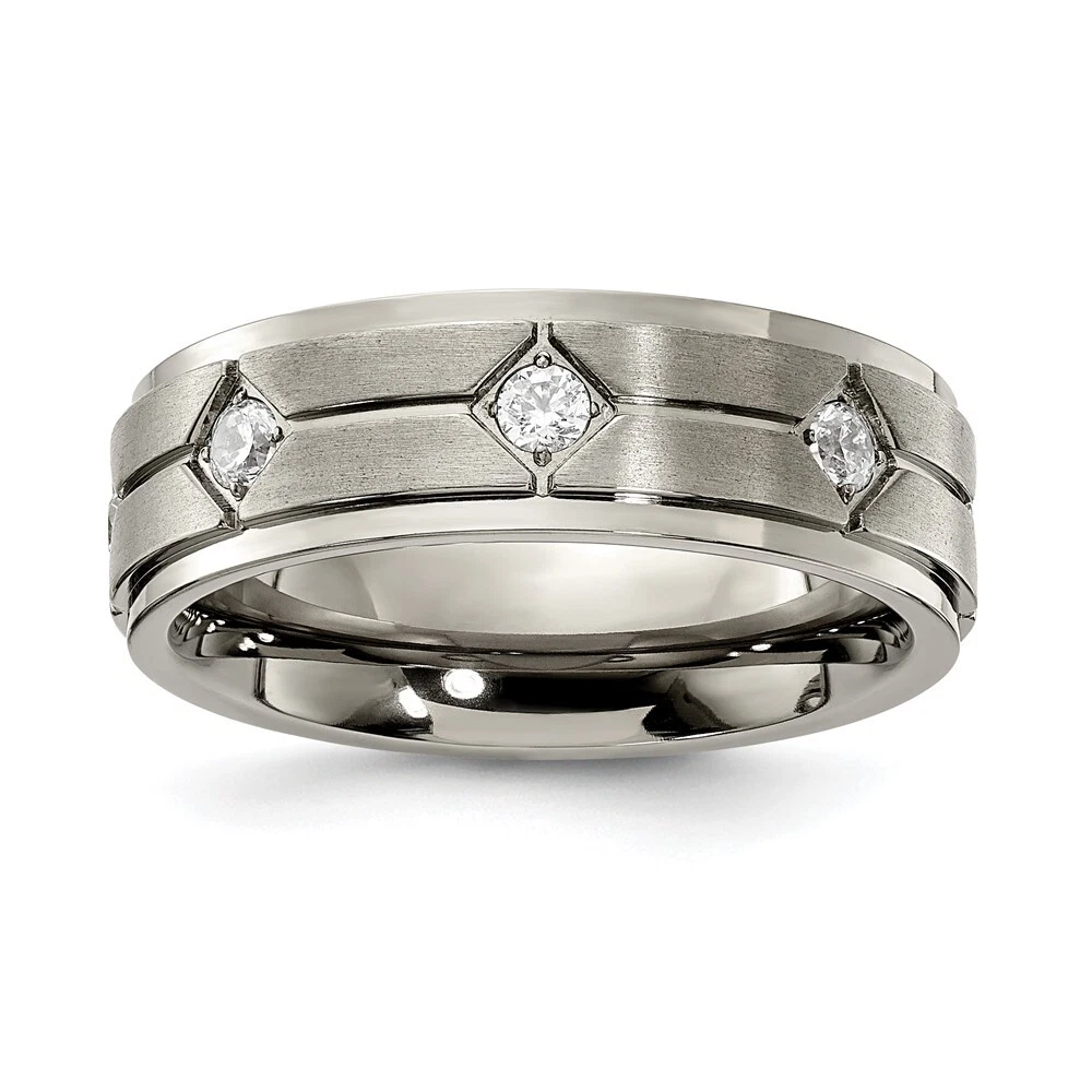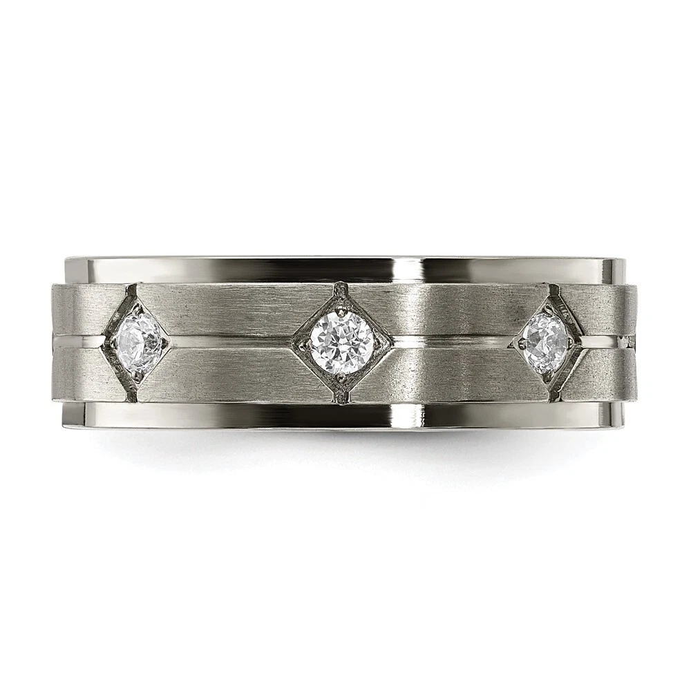 Titanium Polished & Brushed Center with Cubic Zirconia 7.00mm Band Ring Size 11