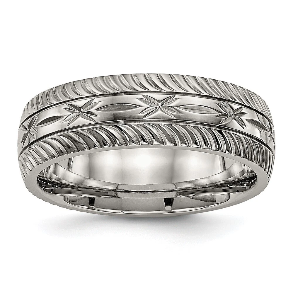Finish:Polished|Band Width:7 mm|Material: Primary:Titanium|Ring Fit:Comfort|Sizeable:No|Thickness:< 2.5 mm|Item Weight U/M:gm|Width of Item:7 mm|Engravable:Yes|Packaging:Gift Pouch|Product Type:Jewelry|Jewelry Type:Rings|Sold By Unit:Each|Gender:Unisex|Texture:Diamond-cut|Material: Primary - Color:Grey|Ring Type:Wedding Bands|Edge Type:Flat|Ring Shape:Half Round All weights and measurements are approximate and may vary slightly from the listed information. Welcome to diamond_6720 Payments We accept all Ebay approved payment. Please sent the payment to us within 8 days after the auction has ended, or you will have unpaid case auto open by eBay. Shipping Policy We will ship all items within 1 business days of purchase during the work week (M-F) excluding holidays. If you order on Friday, your order will be shipped the following business day. Tracking will be provided when it becomes available. We will only ship to a PayPal Verified Address. Please make sure your address is current and correct. If the information does not match, your order may be canceled. Buyers are responsible for all customs, duties and taxes for your respective countries. Delivery times for International Shipping will vary. California Buyers Pay 9.0% Tax on all orders. case auto open by eBay. Return Policy & Exchange Returns or Exchange are accepted. Buyer must contact us within 30 days after the item is received. Item must be returned in unworn and resalable condition. We will only issue a refund for the purchase price, excluding any shipping fees. If we are at fault, we will provide a full refund. Buyer is responsible for all return shipping costs. BUYERS FEEDBACK If you have any concerns regarding your purchase, please contact us via eBay Message, we assure you that a satisfactory resolution will be reached. Your feedback is very important to us Do remember to give us 5 star rating(*****) if you are satisfied with our product & service .