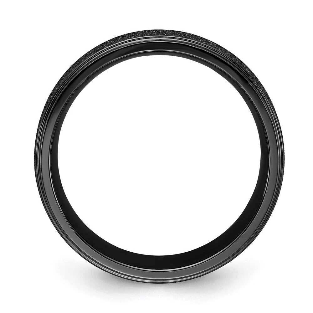 Titanium Polished Laser-cut Center Black IP-plated 8mm Band Ring Size 12